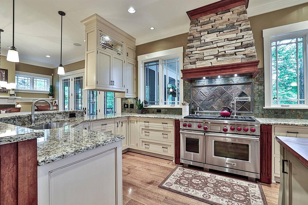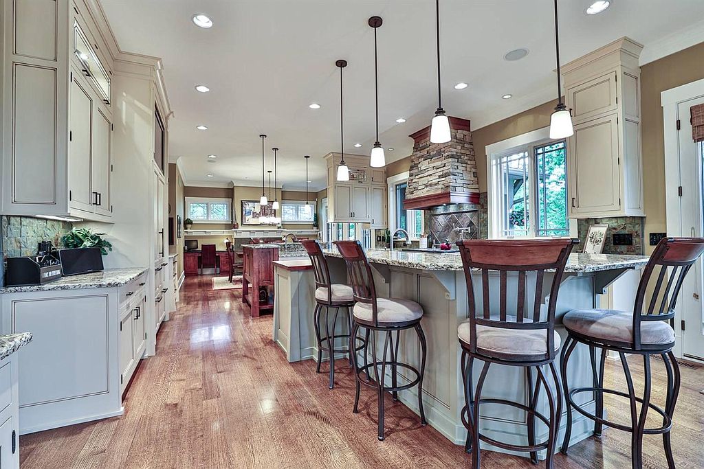 House Beautiful on Kenridge Lake! Serenity is yours. Craftsman details. Wide plank flrs. 8' solid wood doors. LR has flr-to-ceiling stone FP. Award-winning kitchen:custom cabs; Wolf oven; Sub-Zero appli; walkout to deck, scr. porch. FP in bkfst rm. Main BR has lg designer closet. Incredible Mstr bath: 2 sinks, custom cabs & radiant heating. Study w/paneling & bookshelves. Rec rm w/lg pub/wet bar. Smart home tech. Outside:screened porch; deck; patio with 3-story stone fp. Leave offers open 48hrs.