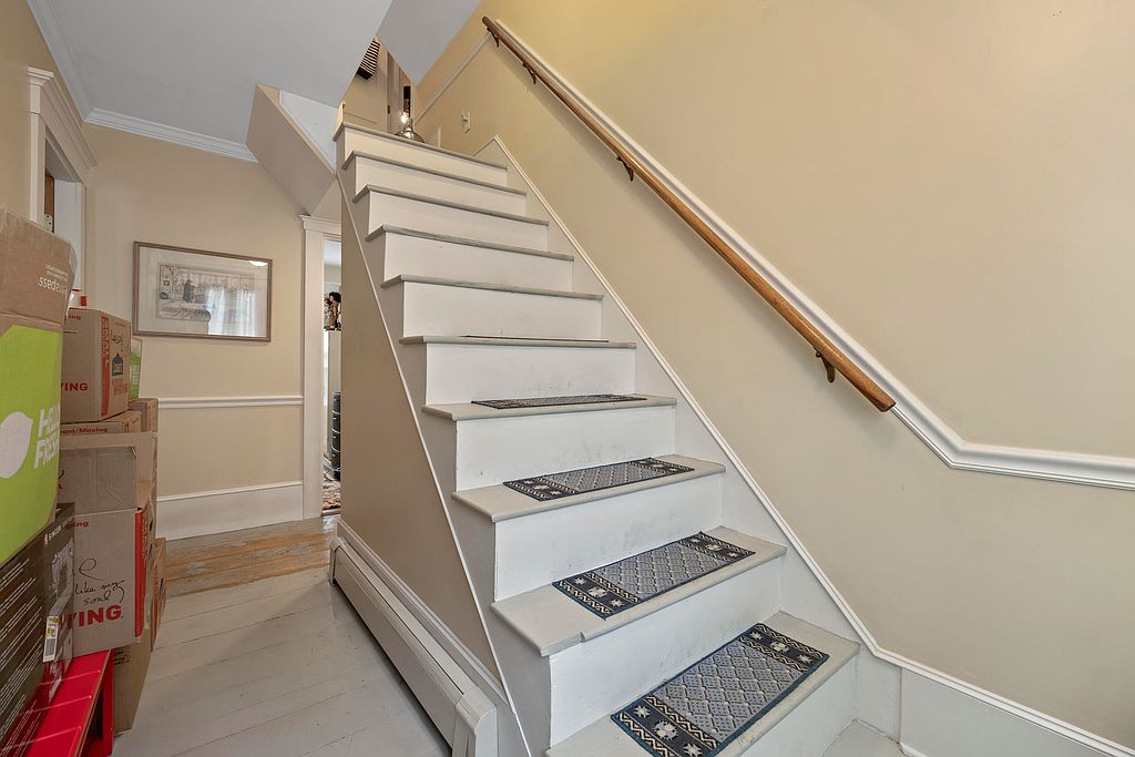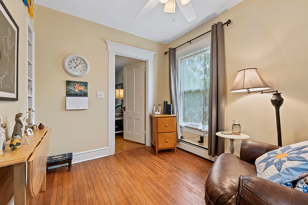 Fabulous Farmhouse with Large Backyard and Upgraded Kitchen.Step into this home and immediately feel welcomed by the warmth of the hardwood flooring throughout. With three bedrooms, two bathrooms, and an attached barn for one car, this two-story single-family home is perfect for those who would like to be next door to the elementary school. There is a first floor bedroom with closet. The living room is the perfect spot to relax by the cozy Pellet stove and admire the high ceilings. The upgraded kitchen features newer stainless steel appliances that make cooking and entertaining a breeze. The additional rooms, including the attic and home office, provide ample space for storage and work-from-home options.The exterior of the home boasts a charming front porch perfect for sipping your morning coffee or enjoying the evening breeze and a back deck for more privacy and includes peach and apple trees, and a blueberry bush and many perennials.Right next door is Academy Hill School, and Kineowatha Park and Bass Park provide ample opportunities for outdoor activities and relaxation.This property also offers a large backyard that is perfect for creating lifelong memories with your loved ones. With everything this home has to offer, it is a must-see for anyone seeking a new place to call home.