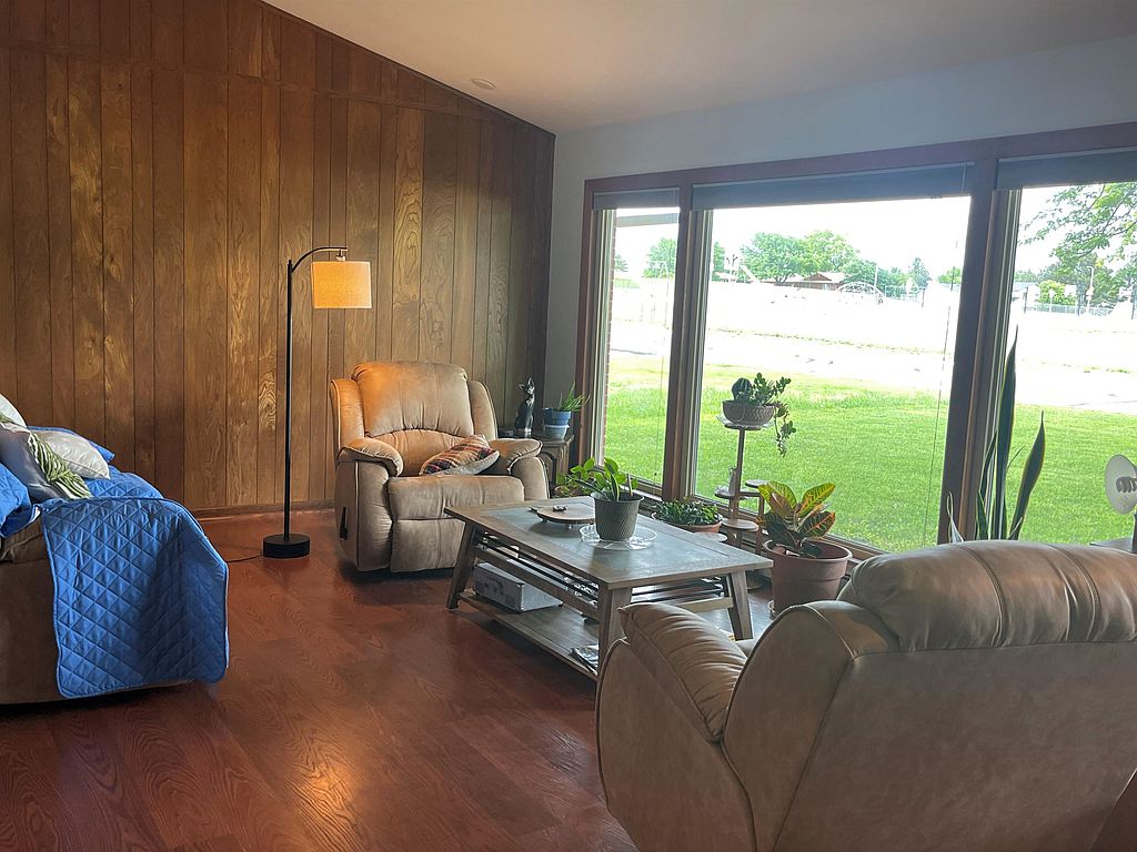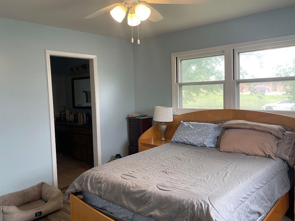 This 4 bedroom 2 1/2 bath home has had many updates such as 2021 New Roof, high efficiency hydronic heating system, paint, new flooring and chain link fence in the back yard. Located across the street from Elementary School, a few blocks from High School, football field and city pool. Great curb appeal with large shade trees on a well maintained yard. Appliances stay AS IS condition no warranty or guarantee