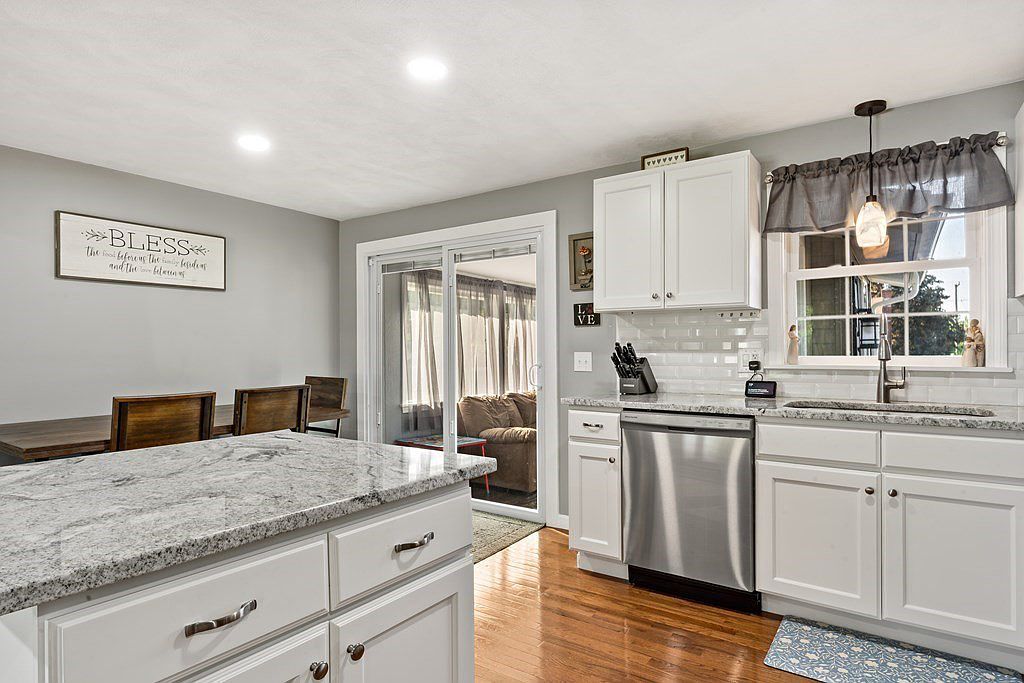 Move right into this remodeled home in desirable South Seekonk location! Features 3- 4 bedrooms, 2 full baths, gorgeous bright kitchen with granite counters and stainless-steel appliances, updated bathrooms, 3-season room, and a fenced yard. 1 year old roof, septic & siding. Call for more information!