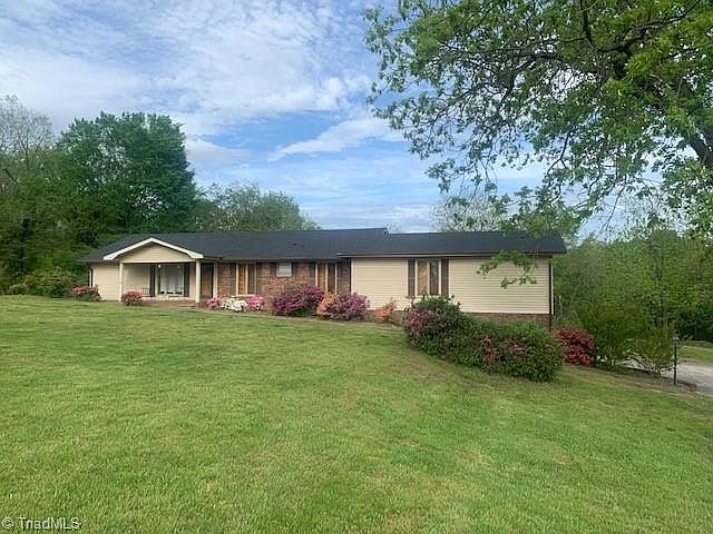 Classic and classy ranch with tons of space, inside & out. Formal living room and dining room. Huge primary bedroom with lots of closet space. Window shutters and built-ins throughout the home. Large basement garage. Can be used for residence or check with city of Trinity for commercial zoning details and possibilities. 'Work' building on property at no value. Owner is NC licensed real estate agent.