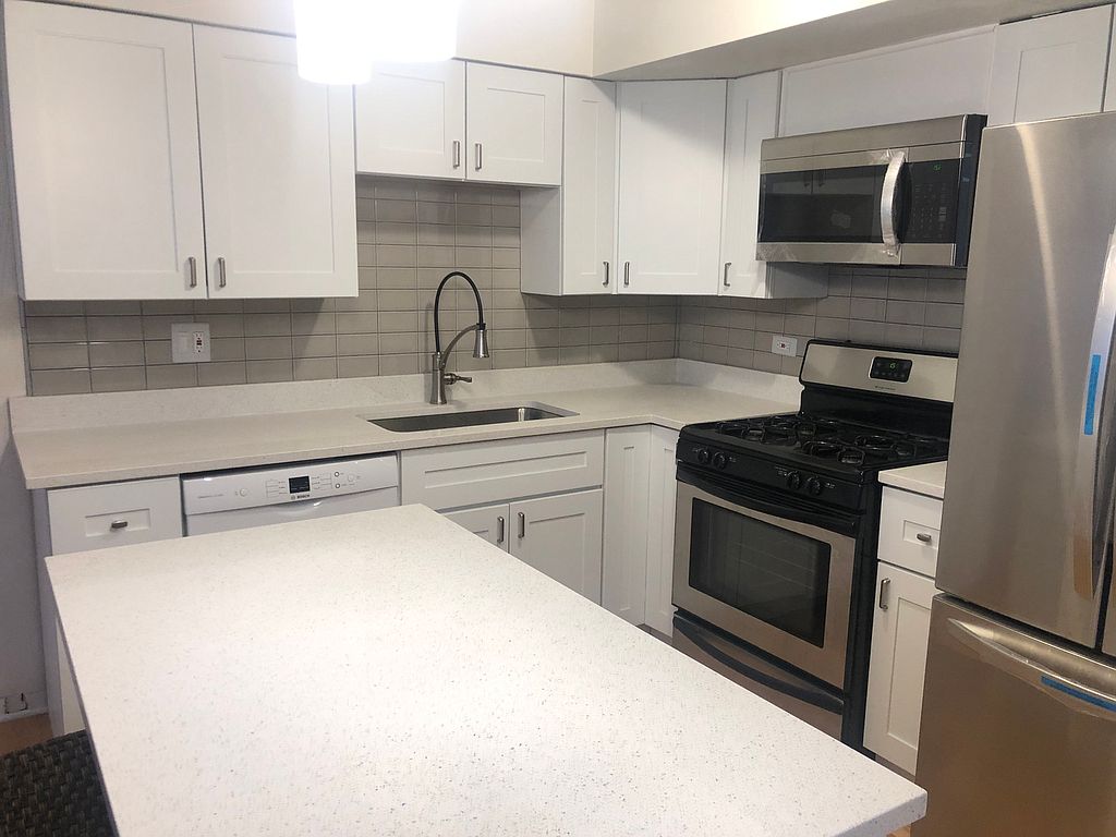 Location! Parking! New Kitchen! New floors! Huge Bedrooms! Fireplace! Laundry! This condo in the heart of Lakeview/Lincoln Park really hits the mark. Private entrance located away from the street noise. Parking in rear of building. Walk right into your large living room with new beautiful Hickory engineered wood floors throughout. New kitchen featuring LG & Bosch appliances and Quartz countertops. Little office nook off of living room. Both bedrooms fit king size beds and both have huge full wall closets. Laundry in unit and also in the common area. Investors welcome, easy to rent. 35lb weight limit for dogs with a max of 50lb for 2 animals. Come see this one today, you will not be disappointed!