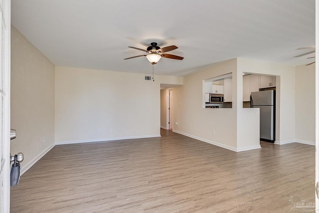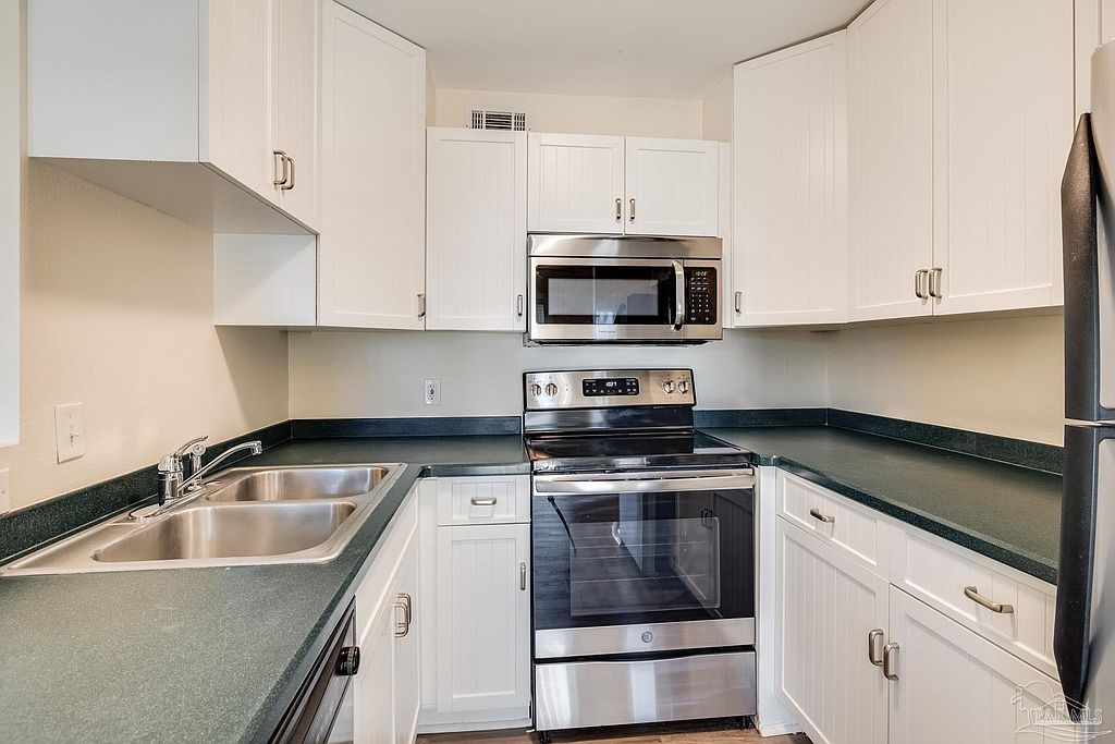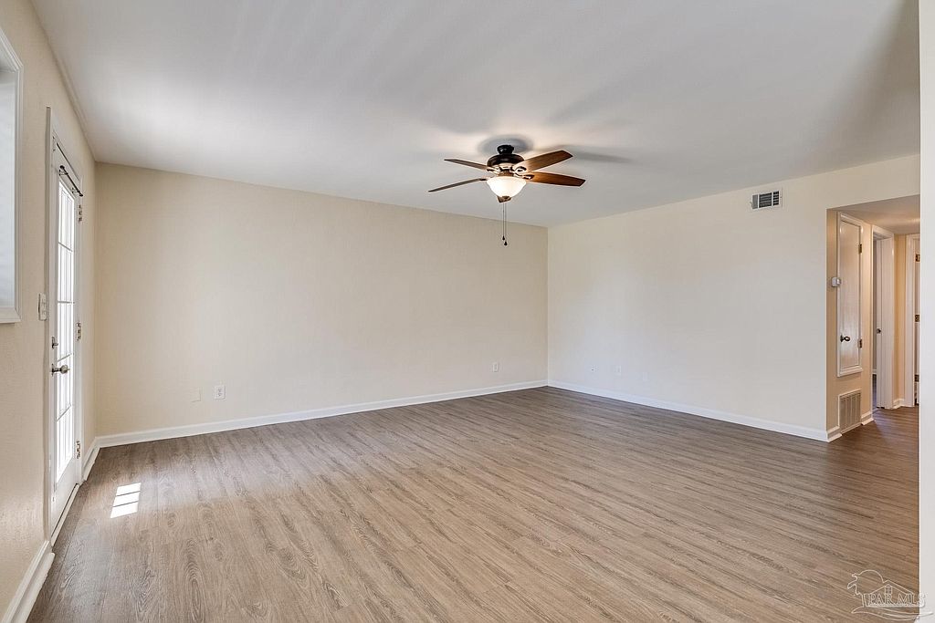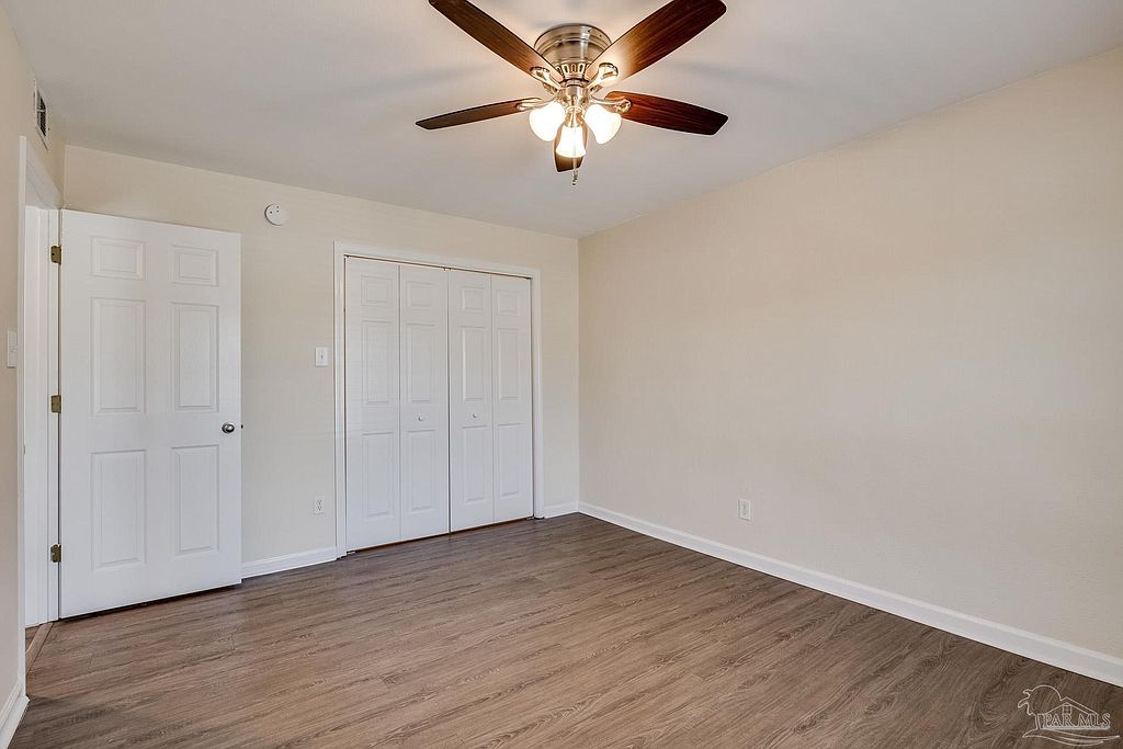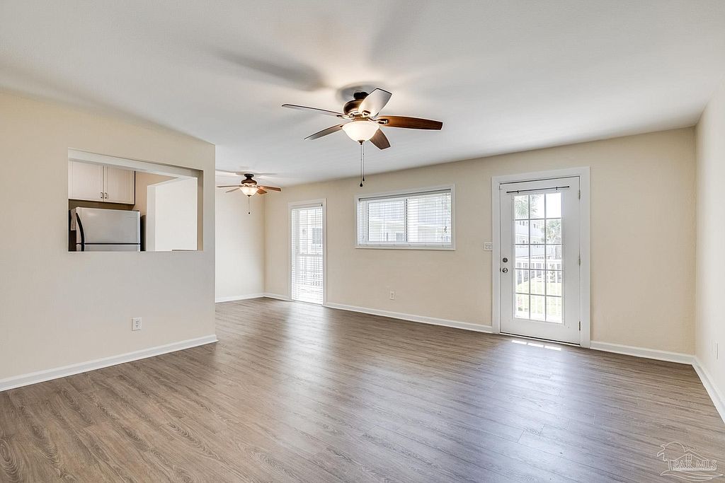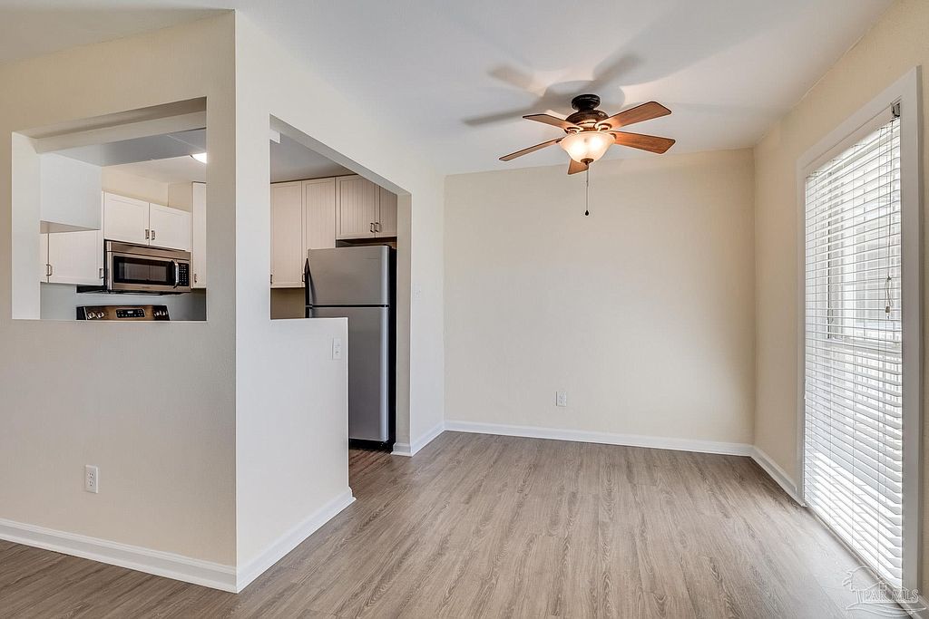 Welcome home to Bayview Terrace! This 2 bedroom, 1 bath condo is located in the beautiful East Pensacola Heights area, within walking distance to restaurants, shopping, and A.K. Suter Elementary School. This unit has been completely refreshed and is ready for you to move right in. Step off the elevator and right through your front door to find a neutral color palette throughout with luxury vinyl plank flooring flowing throughout the main living areas and bedrooms. The large living room opens seamlessly into the dining room and kitchen, making this unit live much larger than its square footage. The kitchen has been upgraded with classic white cabinetry, solid surface countertops, and stainless steel appliances. Down the hall, you'll find the 2 bedrooms, both with ample closet space, and the well-appointed full bath. To top it all off, this unit has interior laundry added in the guest bedroom closet, and a beautiful view of the courtyard and the bay right outside the front door. The complex is well maintained with beautifully manicured grounds, a community swimming pool, a community room/event space, and a beautiful grassy lawn overlooking the bay. This condo truly has it all at such an affordable price tag, so check out the 3D tour and floor plan and schedule your showing today before this one is sold!