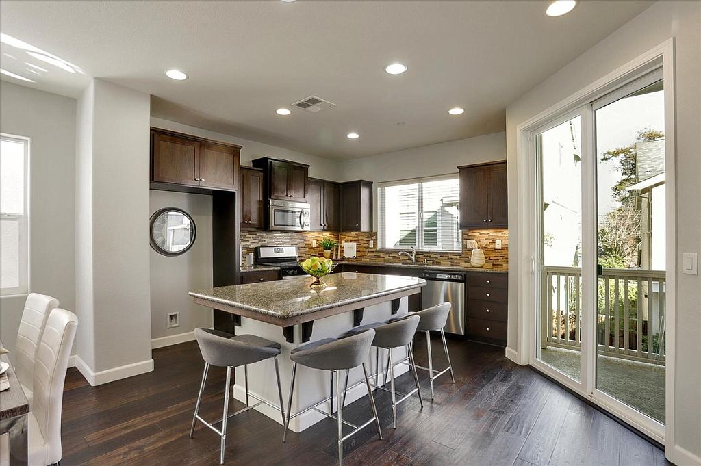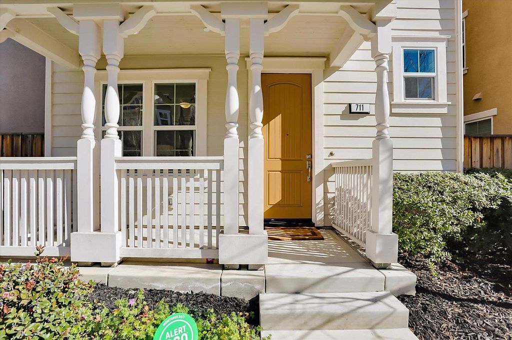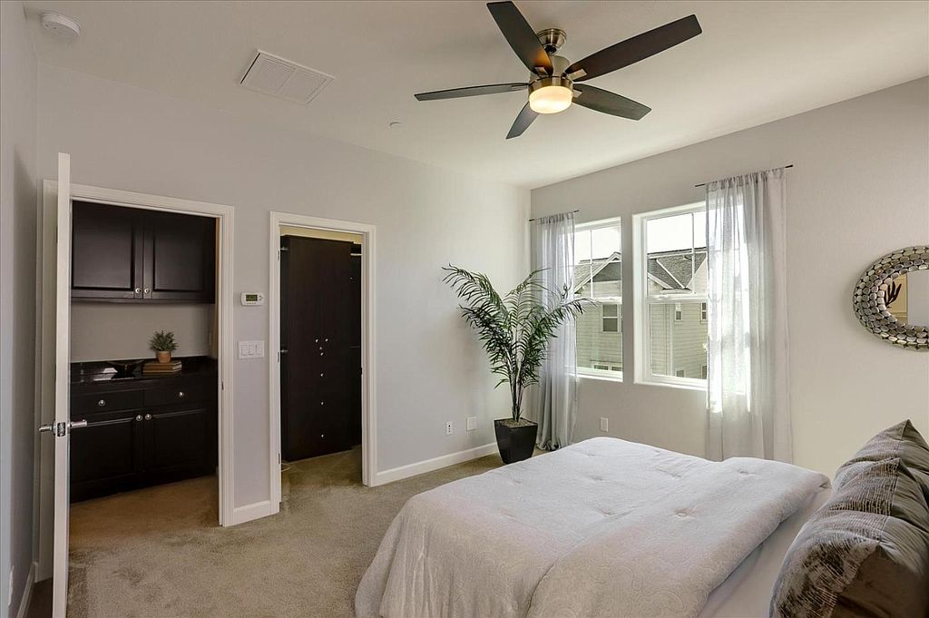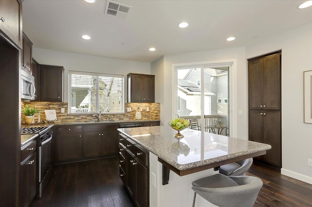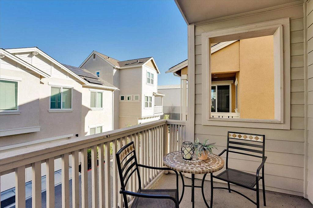 Suppose you can imagine living close to many amenities that a big city has but with a local feel from a short walk to the Historic Japan Town, a quick ride to the SJC airport, proximity to major freeways (101, 880 & 87), pet-friendly dog park. In that case, this is the home for you! Dont miss out on this bright, immaculate, and impeccable home with an open layout, high ceilings, and a spacious covered balcony that offers the perfect space to relax and enjoy. The kitchen is ideal for entertaining with a modern backsplash, granite countertops, and an oversized island. Hidden features of this home include converting the den into a 3rd bedroom. The large master bedroom has a custom walk-in closet, spa-style en-suite master bathroom with luxurious tub and double vanity. The second bedroom has its own en-suite for added guest privacy. Finished 2-car attached garage, custom pavers on the side yard make this home, as described by the previous owners, a HAPPY PLACE.