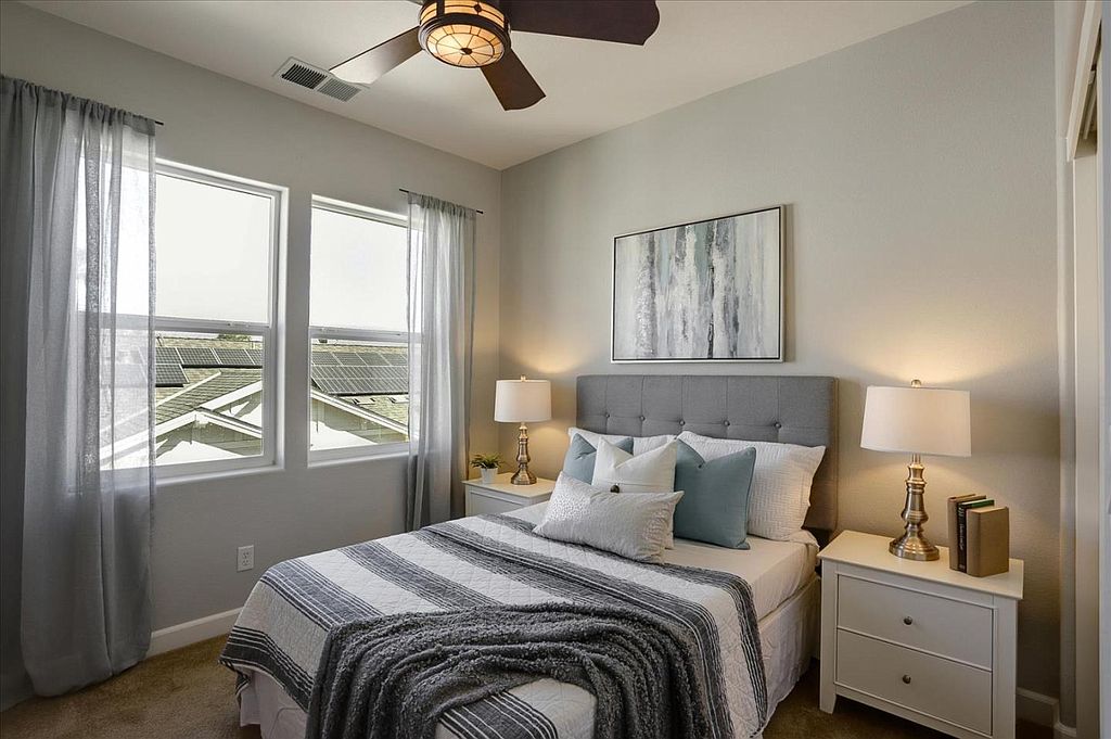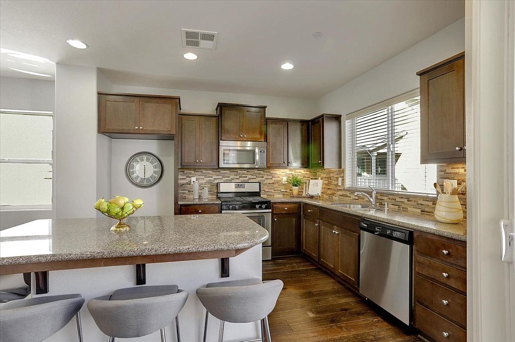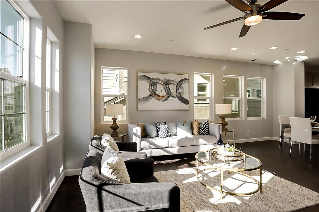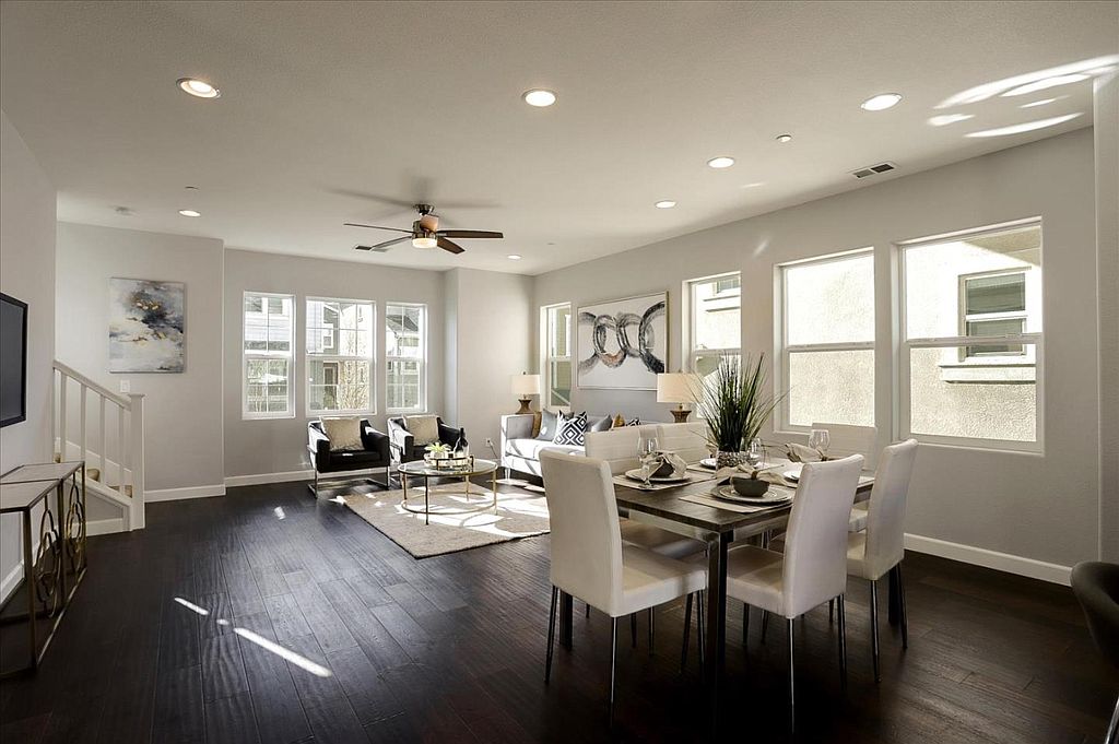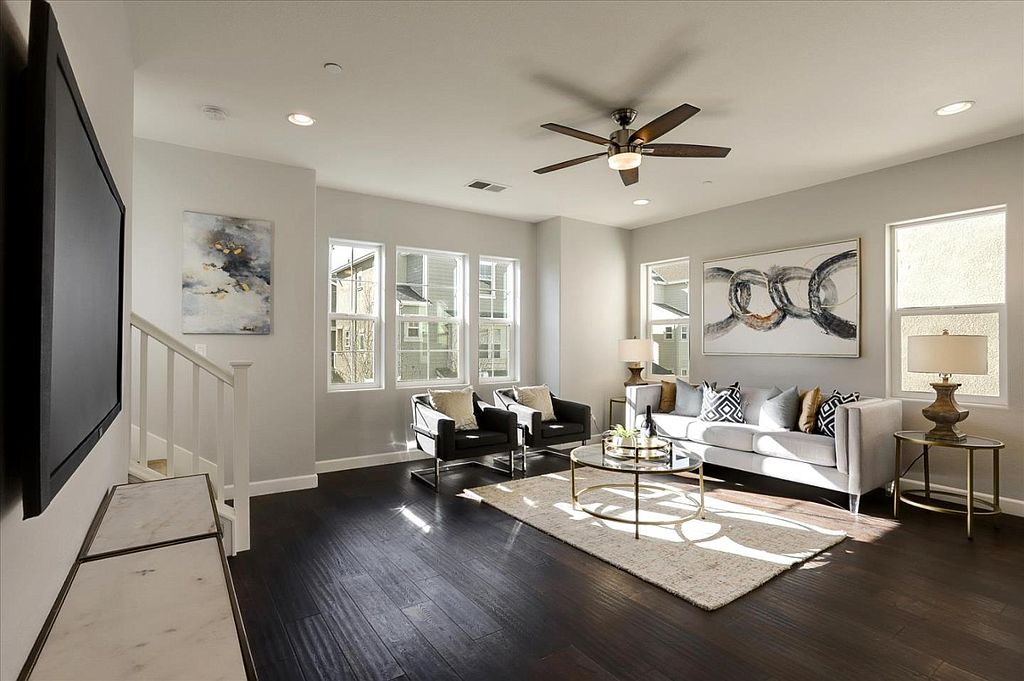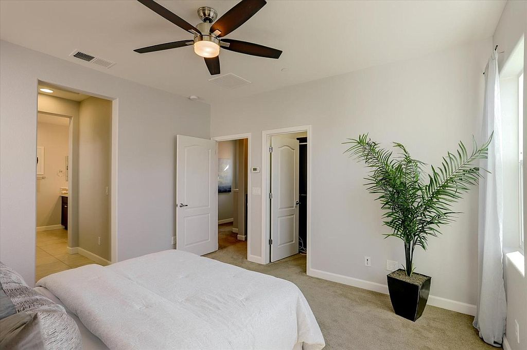 Suppose you can imagine living close to many amenities that a big city has but with a local feel from a short walk to the Historic Japan Town, a quick ride to the SJC airport, proximity to major freeways (101, 880 & 87), pet-friendly dog park. In that case, this is the home for you! Dont miss out on this bright, immaculate, and impeccable home with an open layout, high ceilings, and a spacious covered balcony that offers the perfect space to relax and enjoy. The kitchen is ideal for entertaining with a modern backsplash, granite countertops, and an oversized island. Hidden features of this home include converting the den into a 3rd bedroom. The large master bedroom has a custom walk-in closet, spa-style en-suite master bathroom with luxurious tub and double vanity. The second bedroom has its own en-suite for added guest privacy. Finished 2-car attached garage, custom pavers on the side yard make this home, as described by the previous owners, a HAPPY PLACE.