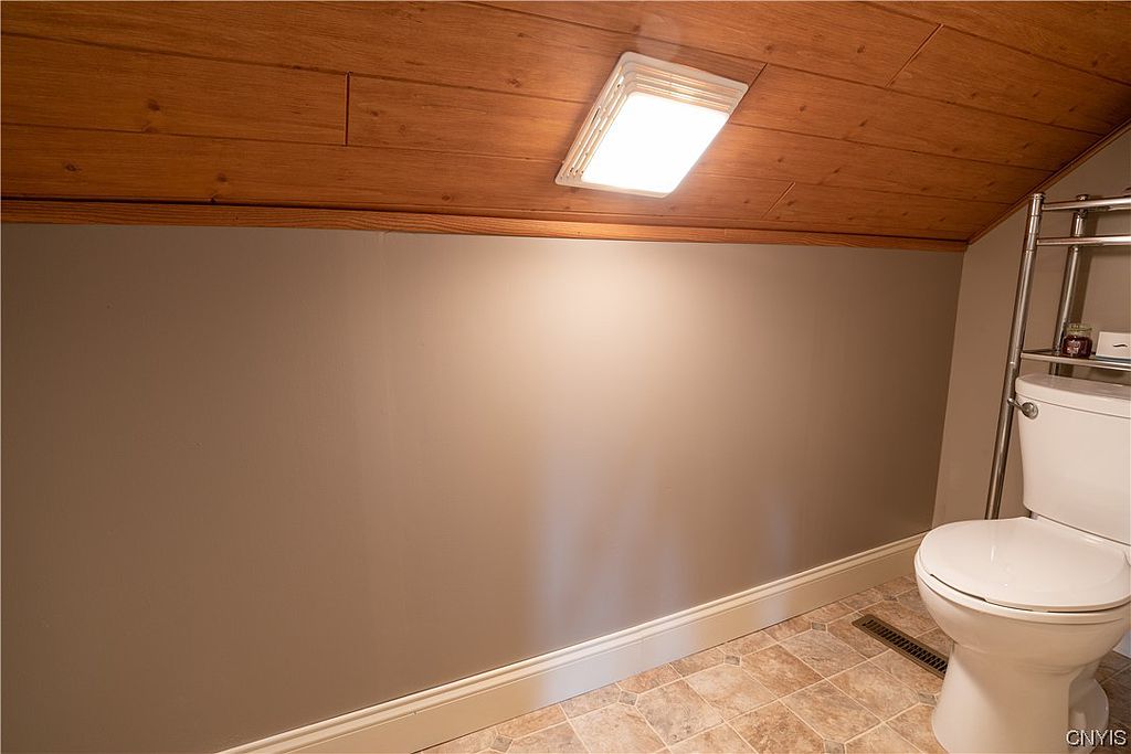 You will feel confident in saying 'This is the one!'. Updated from top to bottom, and meticulously maintained, this home is truly a gem. The kitchen has been updated with granite countertops and stainless steel appliances, with new flooring spanning into the dining area and into the rest of the first floor. A spacious living room opens by sliders to a screened in porch, perfect for those warm summer nights. A full bath with a walk-in shower completes the first floor. Moving upstairs you will find a primary suite with a half bath, along with another bedroom. Both bedrooms have been finished with tongue and groove ceilings, the primary vaulted to cathedral height, providing the most serene and lofty feel. Cherry beams add to the elevated details of the primary suite, along with the lovely half bath with tile and a solid surface vanity. The mechanics of the home are also in top notch working order. The electrical service has been updated to a 150 amp service, hot water tank replaced in 2020, spray foam insulation in both the upstairs and basement, replacement windows, new exterior portion of the chimney, new driveway(2021), furnace serviced annually. This truly is one to see.