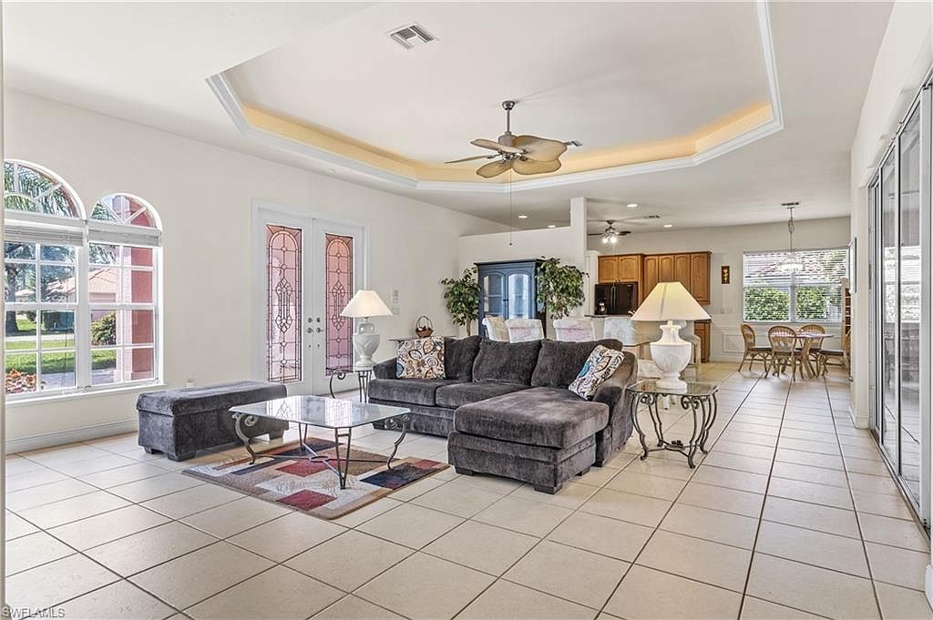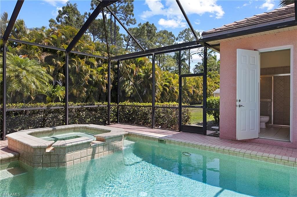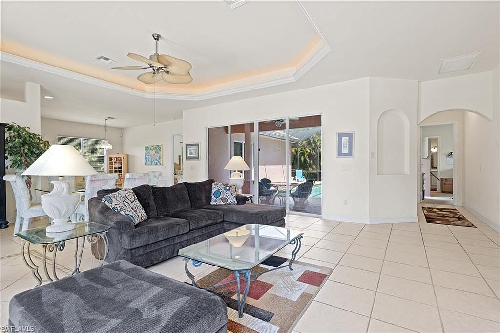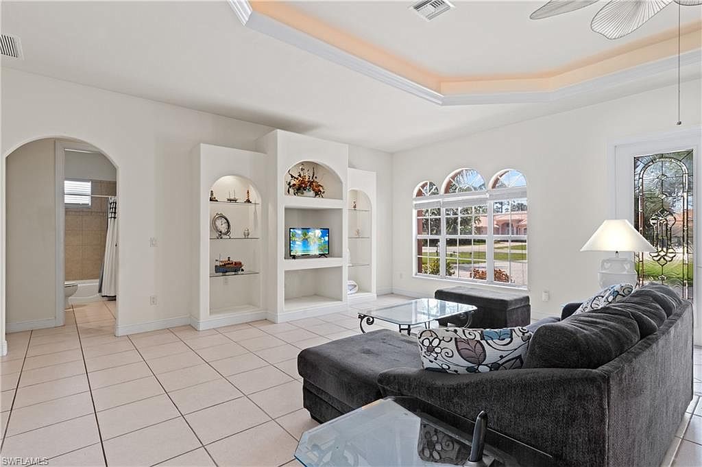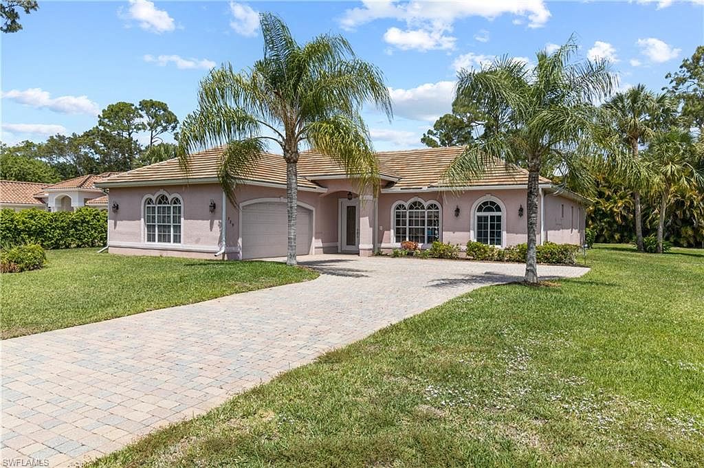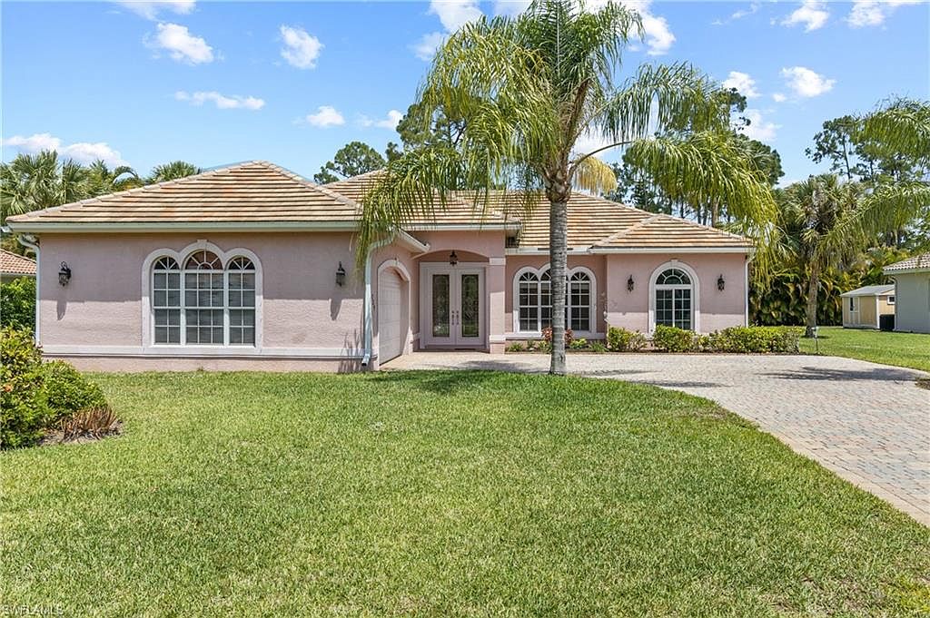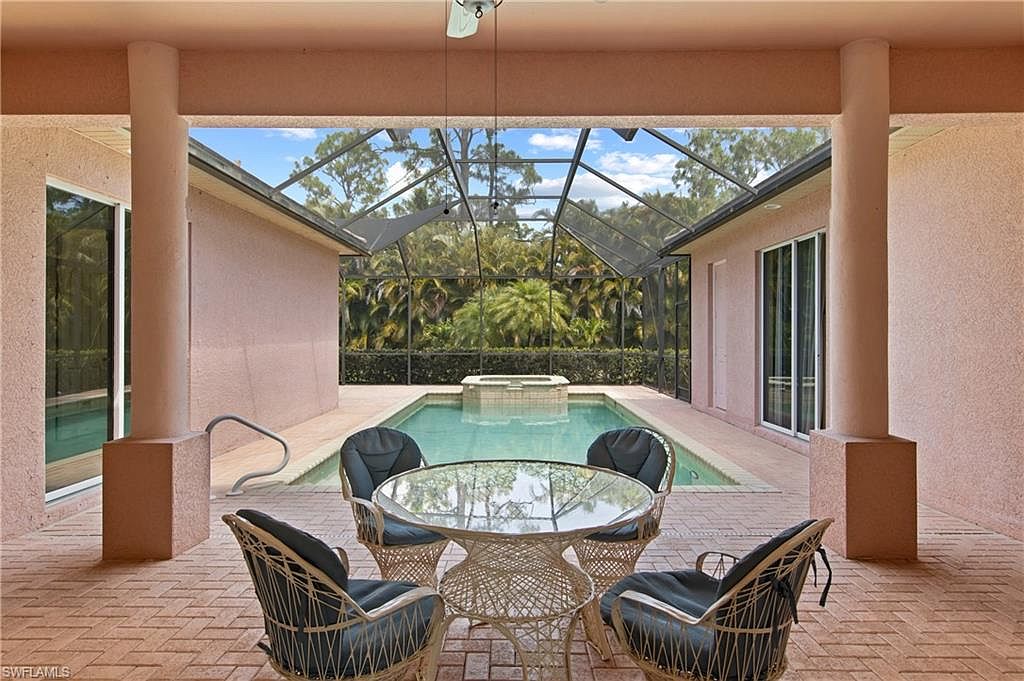 Located on beautiful 18,000 sqf wooded landscaped lot, near shopping and dining and only minutes from downtown Naples, this beautiful house has an open Great Room with view of fabulous pool, spa and waterfall. 10' ceilings in Great Room and Master Room; tiled 18x18 living and kitchen areas, 3 bathrooms with custom arches and columns, custom mirrors and bath shower enclosures, designed tile work. Kitchen features light rail and crown molding, island work space, granite countertops. New roof in 2018, newer appliances. This house is a must see.