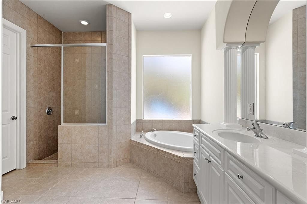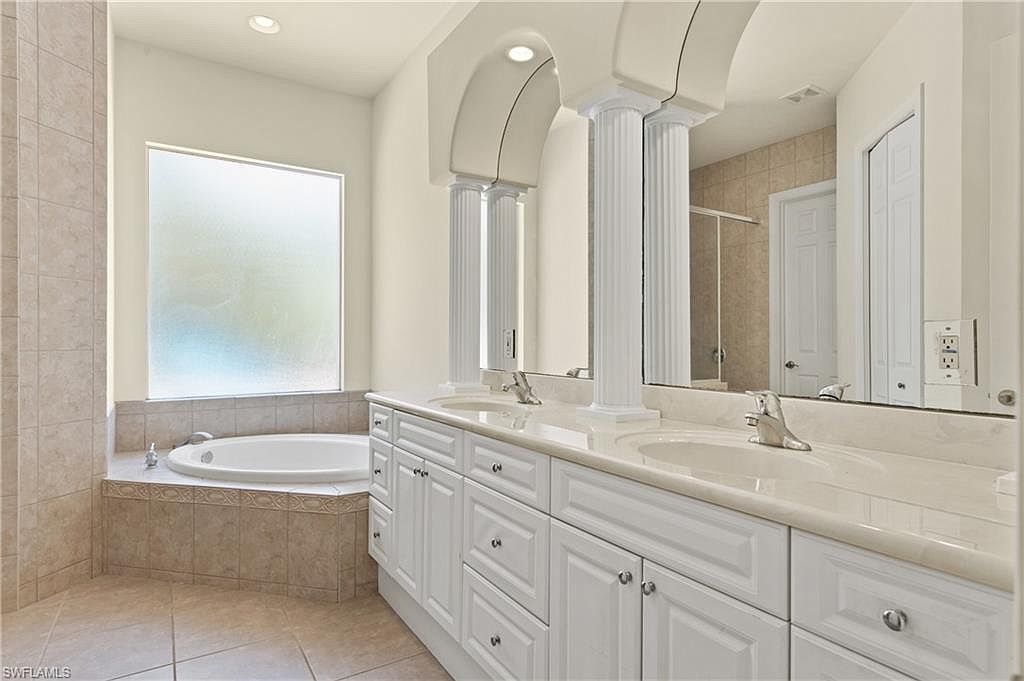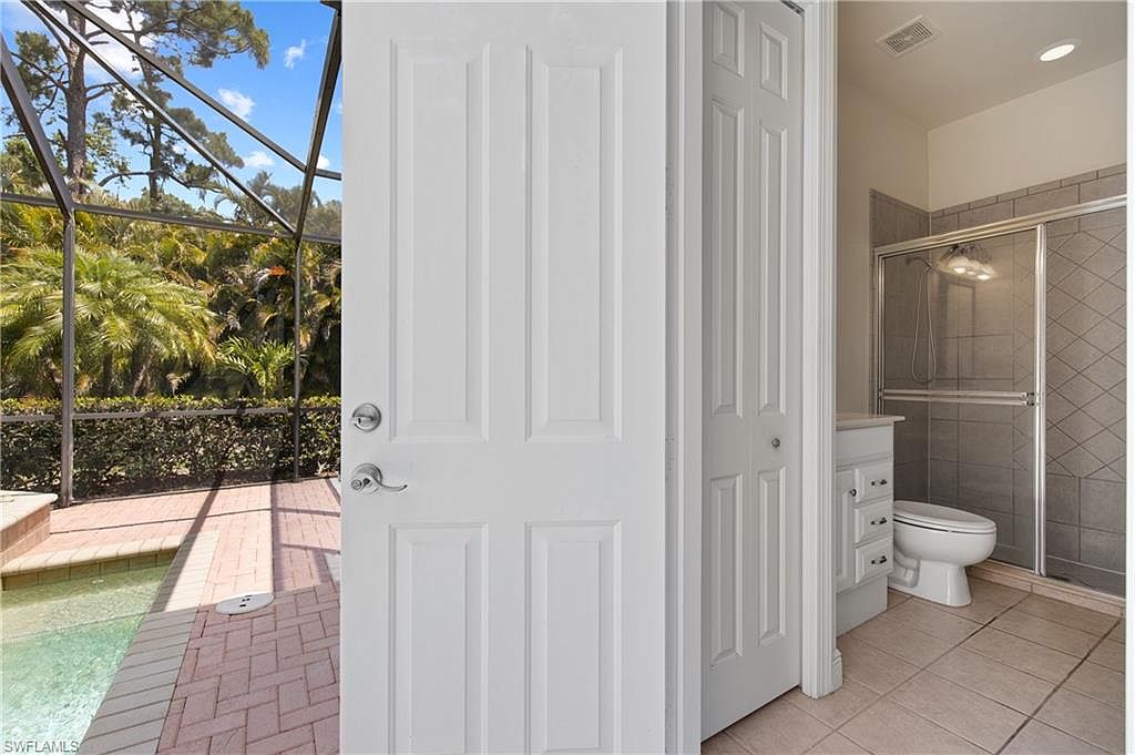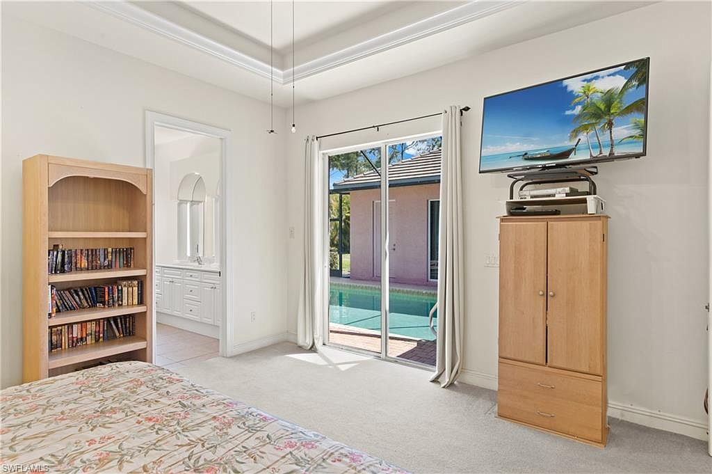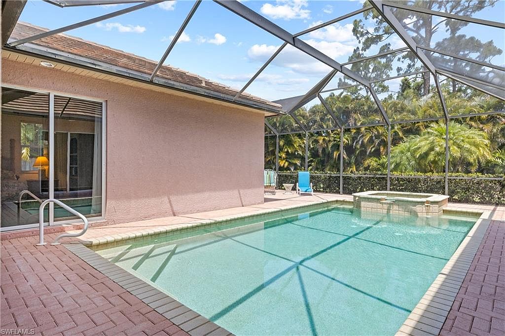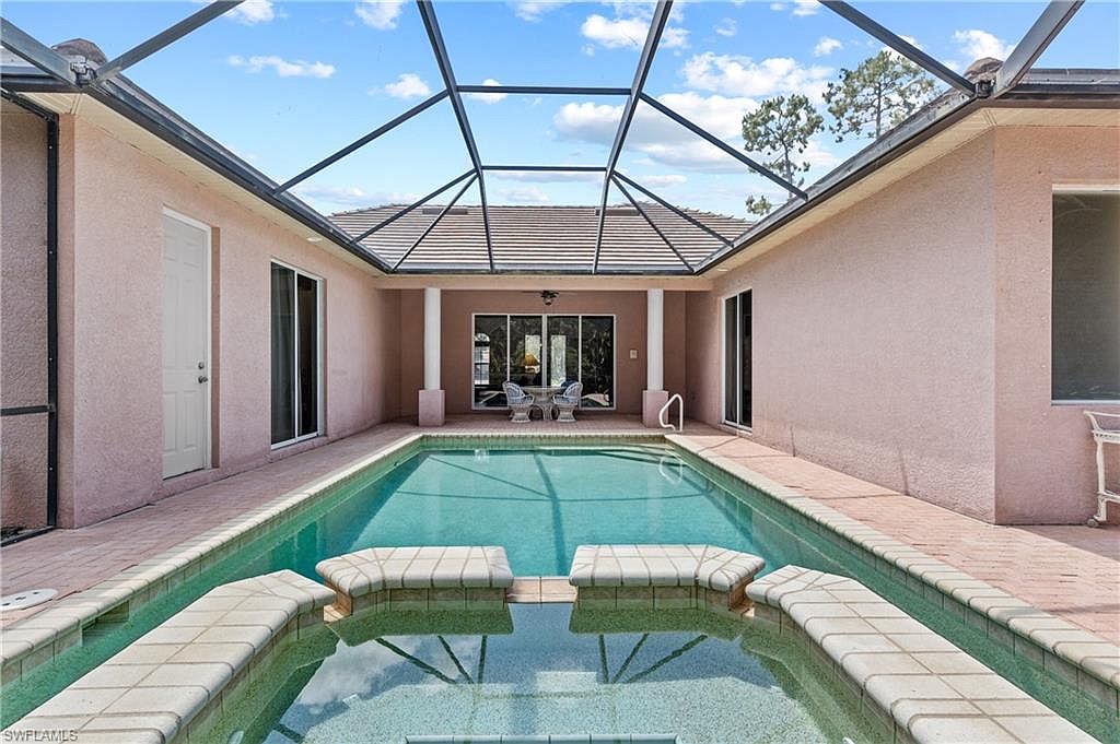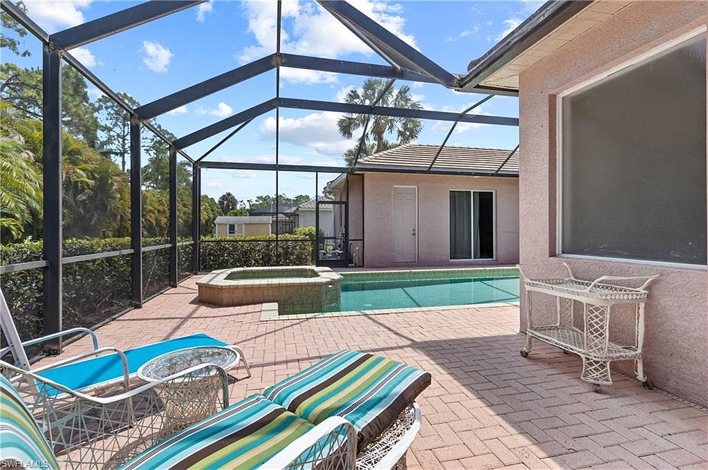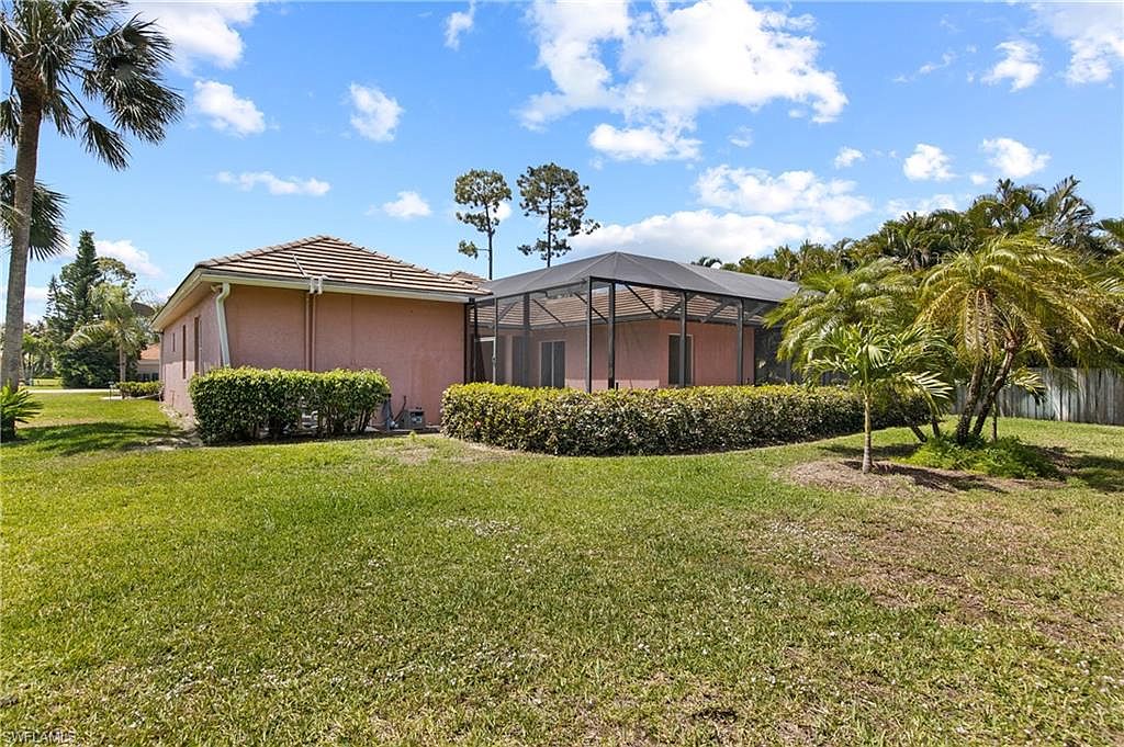 Located on beautiful 18,000 sqf wooded landscaped lot, near shopping and dining and only minutes from downtown Naples, this beautiful house has an open Great Room with view of fabulous pool, spa and waterfall. 10' ceilings in Great Room and Master Room; tiled 18x18 living and kitchen areas, 3 bathrooms with custom arches and columns, custom mirrors and bath shower enclosures, designed tile work. Kitchen features light rail and crown molding, island work space, granite countertops. New roof in 2018, newer appliances. This house is a must see.