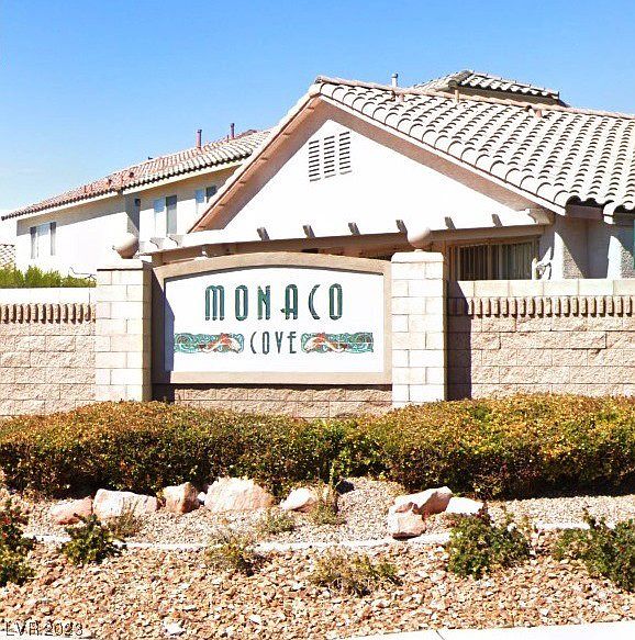 Single Story home at the popular Monaco community. 3 bed, 2 bath and 2 cars garage. Wood floors. Desert landscaping, Cover patio in back yard, middle of Cul-de-sac, Central location close to school, shopping, park and Strip. Low HOA.
