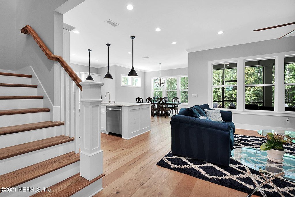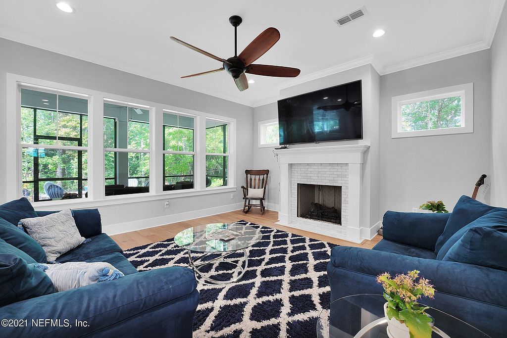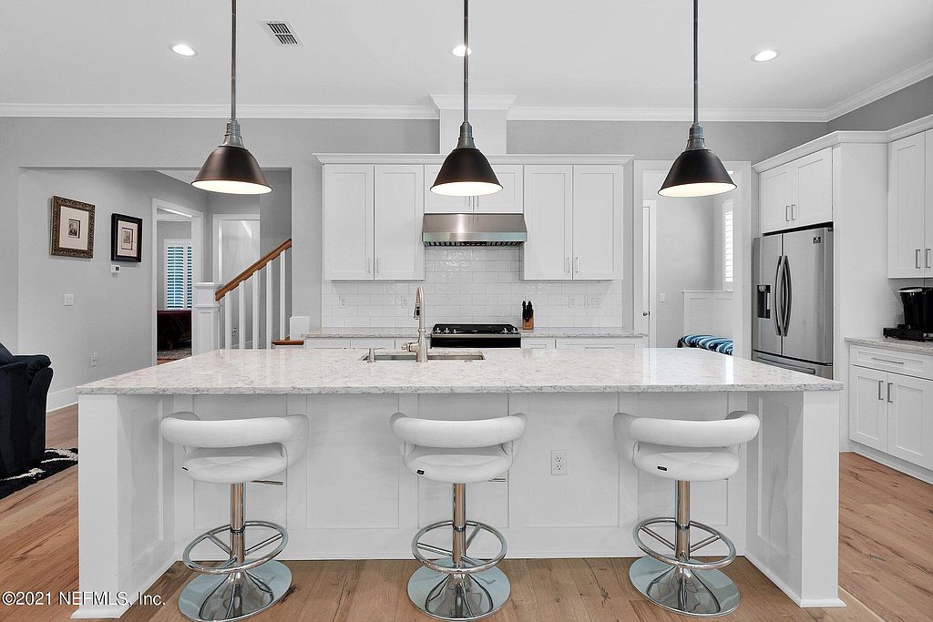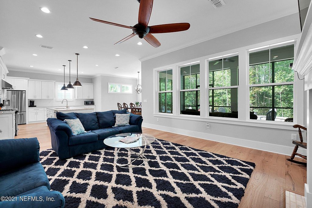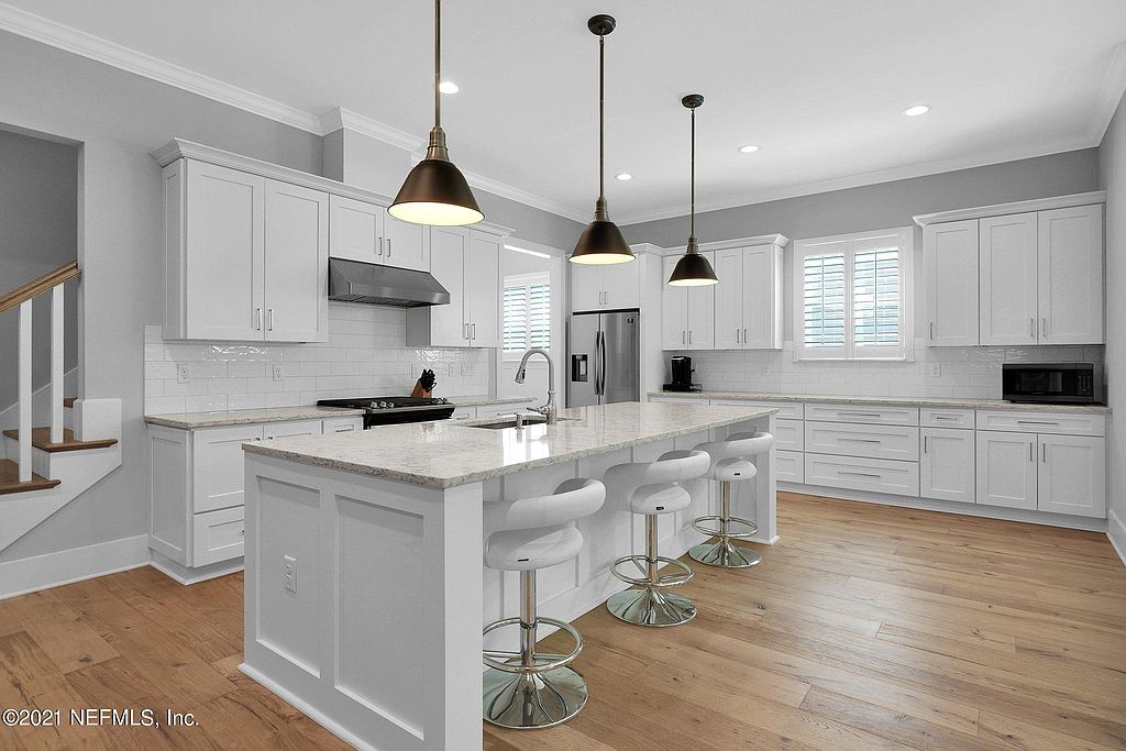 A Must SEE! This home has all the great finishes and is completely move in ready! Gourmet Kitchen with white Quartz Countertops, Gas Stove, and Wide Plank Wood Floors in the main living spaces. Lots of Natural Light and a Preserve View, Screened Porch, Putting Green, and Fire Pit outdoors. This 4 Bedroom and 4 Full Bathrooms Plus Flex Space has a Spacious Master with Giant walk in Closets and soaking tub and so much Natural Light! Marble on the Fireplace and lots of space to entertain! There is plenty of room for everyone in this home.
