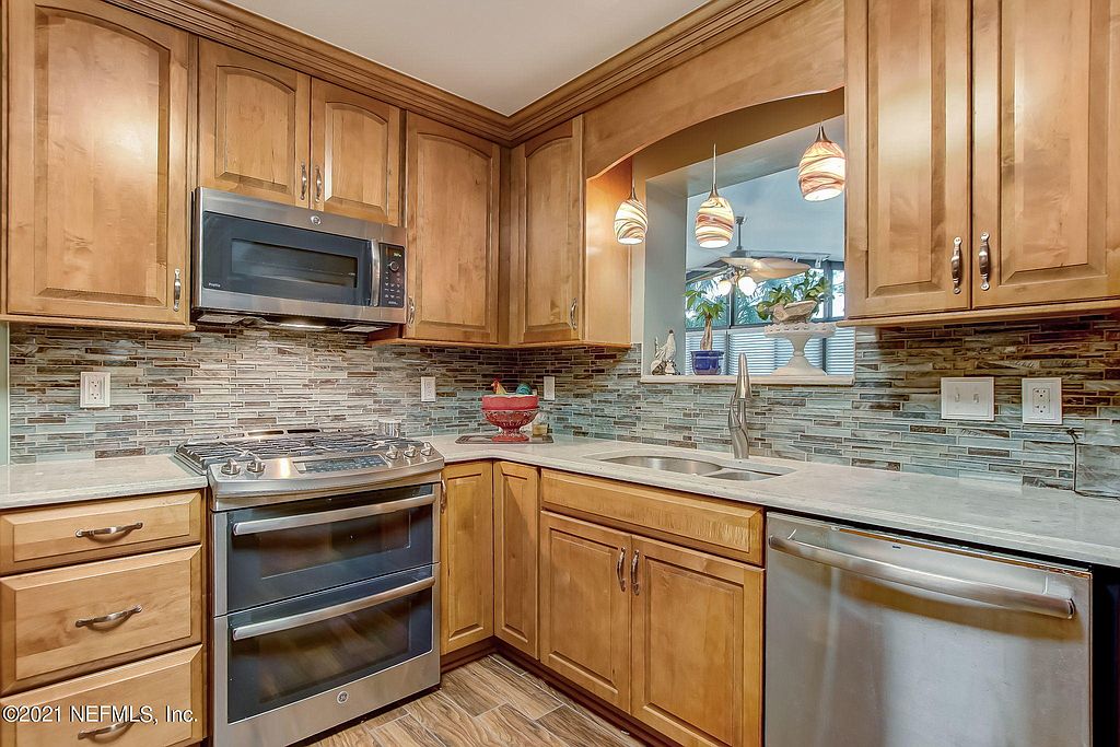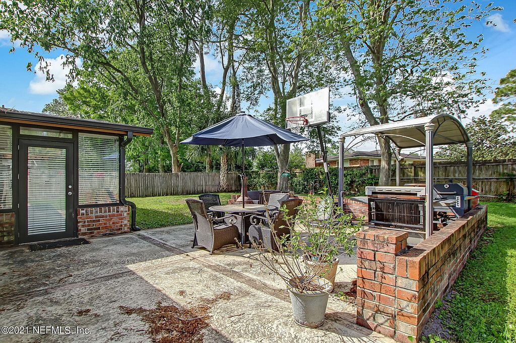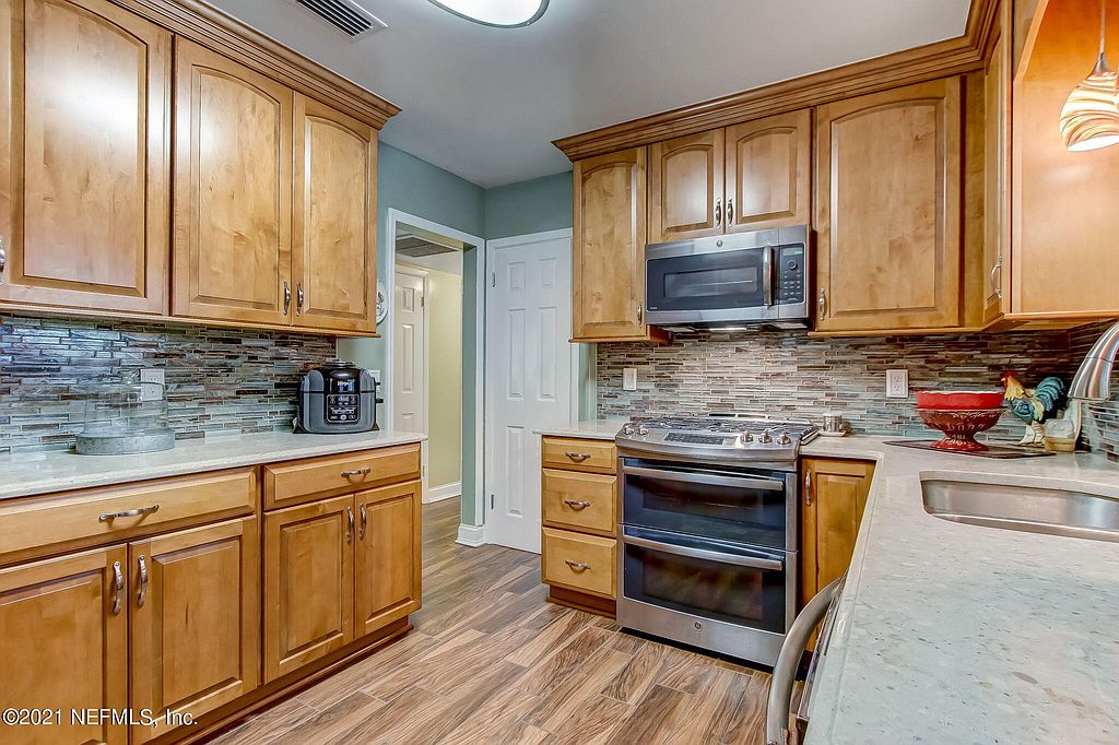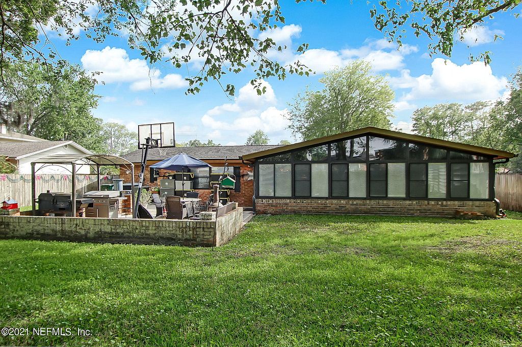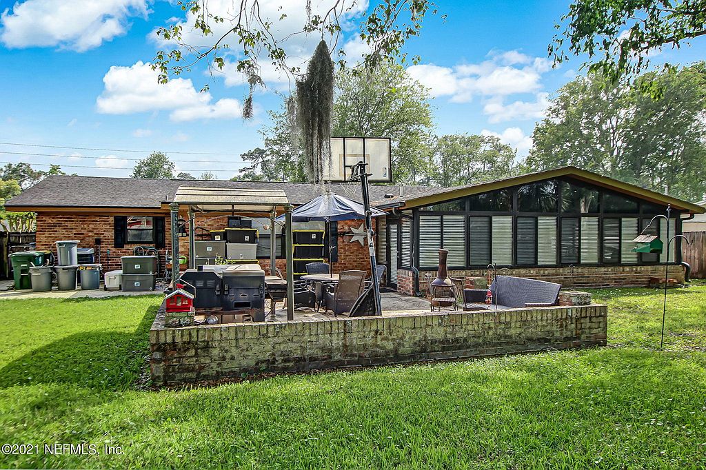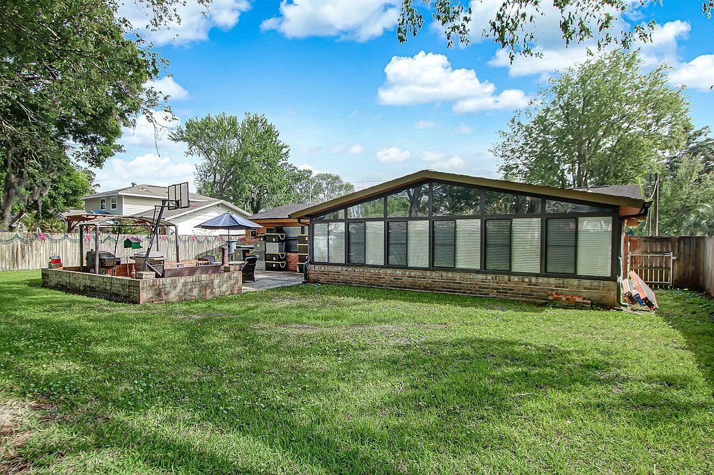 Welcome to 8105 Altama Rd. A beautiful Norwegian BRICK home on a large lot with mature trees, what more could you ask for! This 3 bedroom, 2 bathroom home has a separate dining room, an extra office area PLUS a 20 x 34 bonus area. The kitchen has been updated with 42'' wood cabinetry with crown molding trim, backsplash, quartz countertops, double ovens with a gas range (option to convert back to electric), pantry closet, stainless steel appliances, pendant lighting, and a KEURIG in the fridge. The owner's suite has its own bathroom with a walk in shower. The 2nd bathroom has a bathtub/shower combo and easily accessible to the 2nd and 3rd bedrooms. All three bedrooms have wall to wall closets as well as three hall closets for additional storage. You'll love the wood plank tile throughout the home for easy clean up and maintenance. The huge 2nd living area/sunroom/bonus area is tiled and over 600 sqft with ceiling fans and views backyard. This space is currently being used for a large entertainment and additional eating area. The backyard is fully fenced, has a large open patio area (perfect for grilling and entertaining), and a shed for extra storage. Other features: electrical as been updated, exterior painted trim is protected by Rhino Shield, a new garage door, newer gutters in the front, and updated lighting and fixtures throughout. Make your personal appointment today!