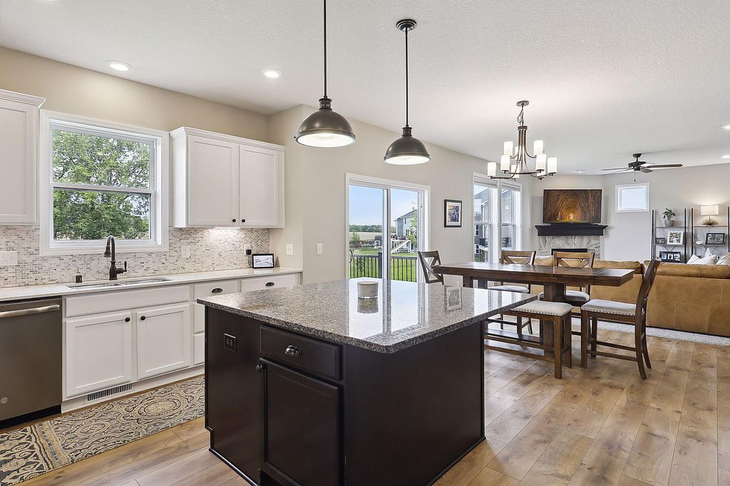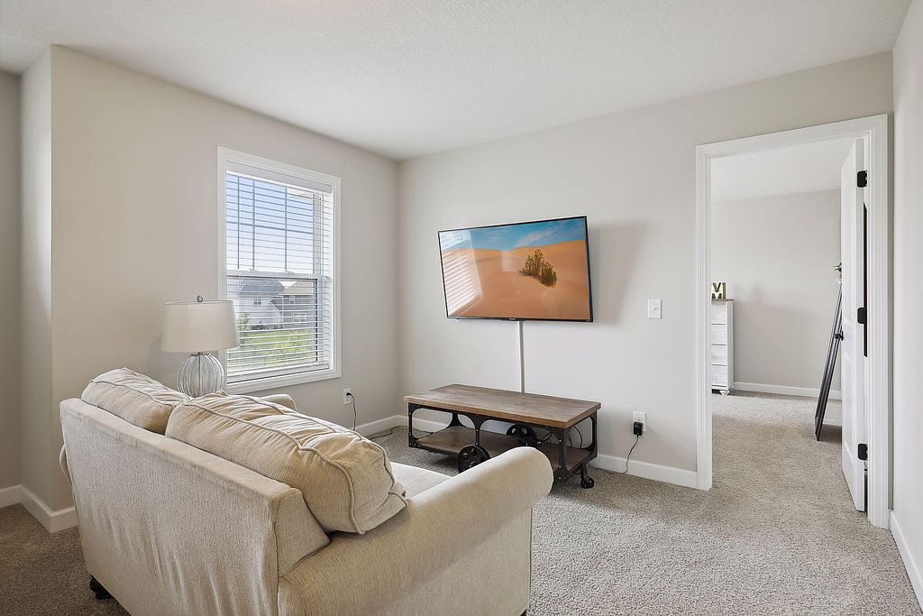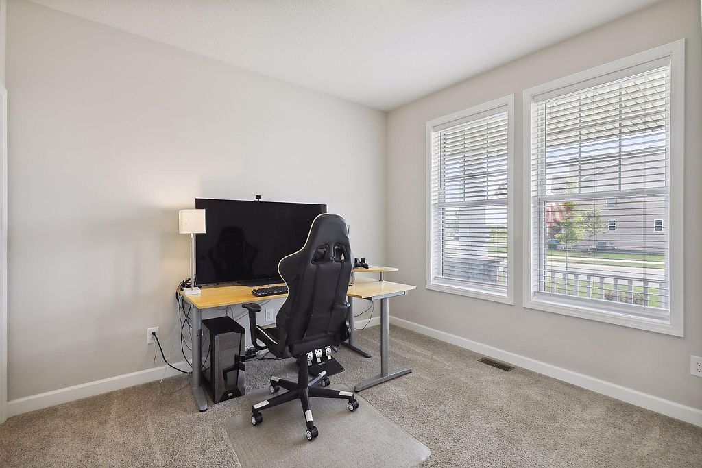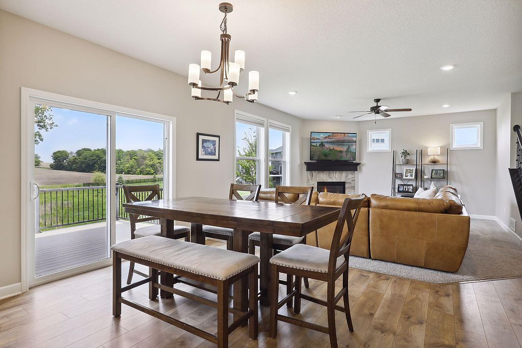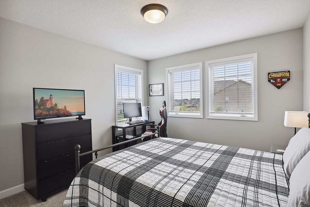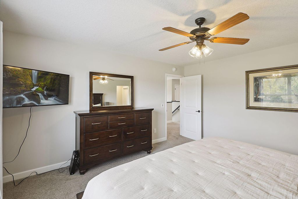 Beautifully maintained 4-bedroom 3-bathroom home boasts an open concept living area with upgraded carpet and flooring. Kitchen features stainless steel appliances, white cabinets and center island breakfast bar. Step out to the spacious deck and take in the magnificent pond view. Main floor flex room offers versatility for your home office or guest bedroom. Upper level has 4 bedrooms and large loft area for relaxation, as well as laundry. The spacious primary bedroom has an ensuite bath, walk-in closet and great nature views. The walkout lower level with bathroom rough-in can be finished to add extra living and entertainment space. This home is in the highly desirable East Ridge High School district as well as conveniently located to Radio Drive and minutes from shopping and dining. Book your showing now!