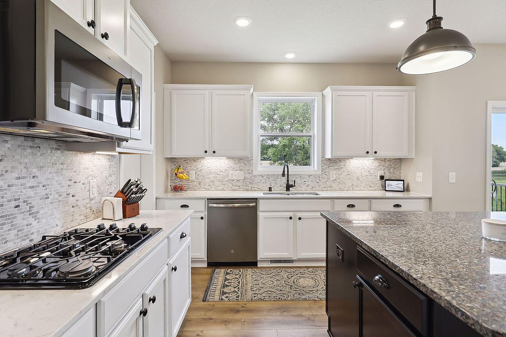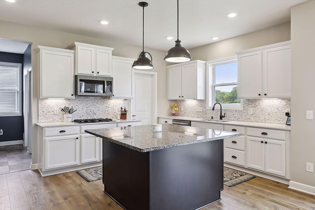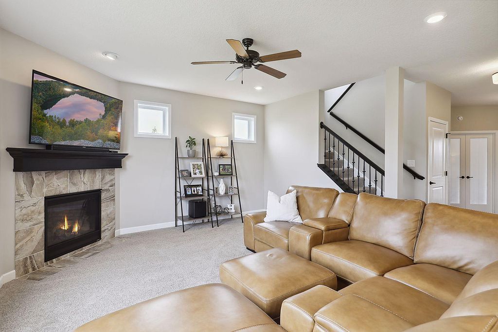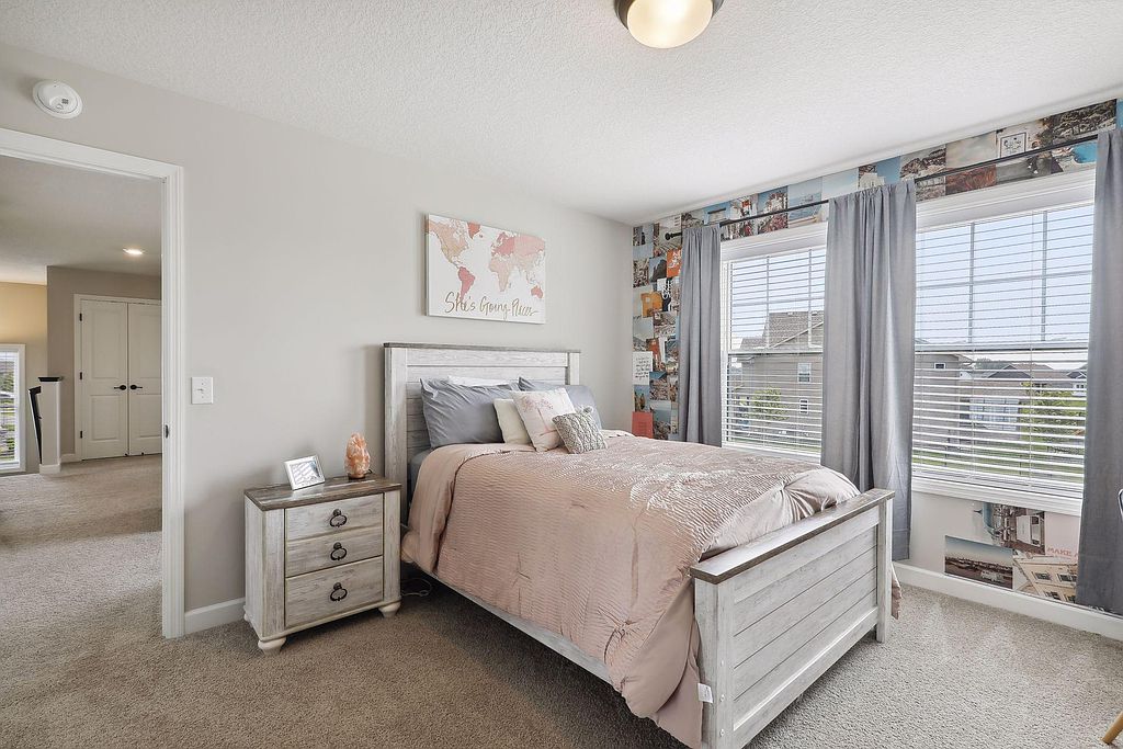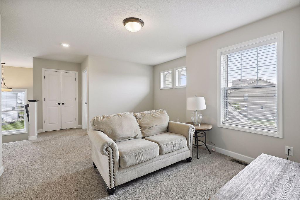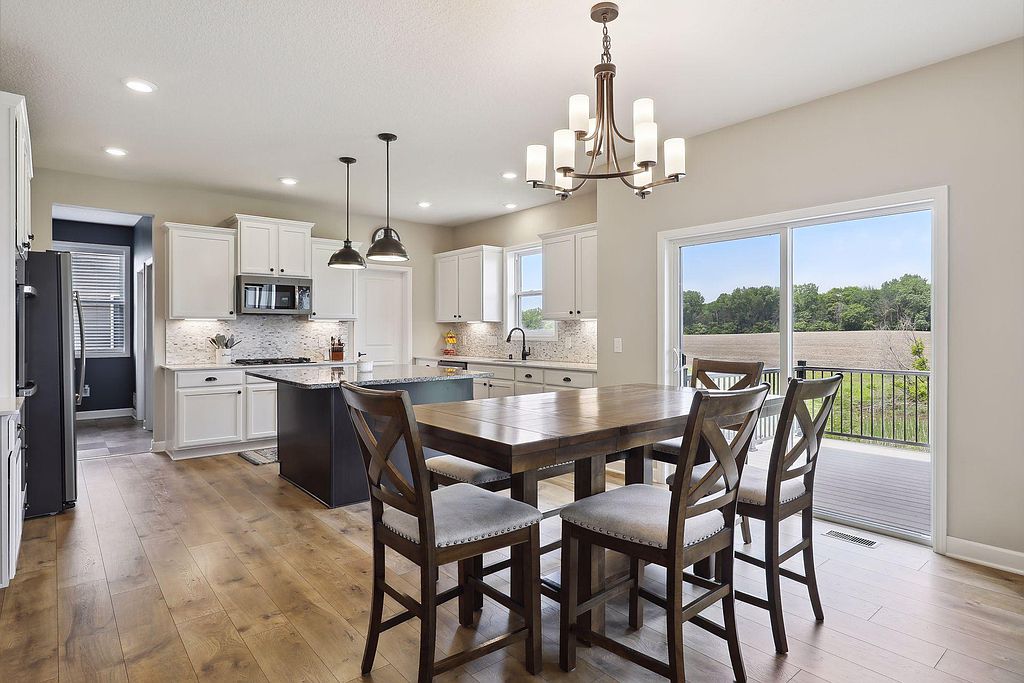 Beautifully maintained 4-bedroom 3-bathroom home boasts an open concept living area with upgraded carpet and flooring. Kitchen features stainless steel appliances, white cabinets and center island breakfast bar. Step out to the spacious deck and take in the magnificent pond view. Main floor flex room offers versatility for your home office or guest bedroom. Upper level has 4 bedrooms and large loft area for relaxation, as well as laundry. The spacious primary bedroom has an ensuite bath, walk-in closet and great nature views. The walkout lower level with bathroom rough-in can be finished to add extra living and entertainment space. This home is in the highly desirable East Ridge High School district as well as conveniently located to Radio Drive and minutes from shopping and dining. Book your showing now!