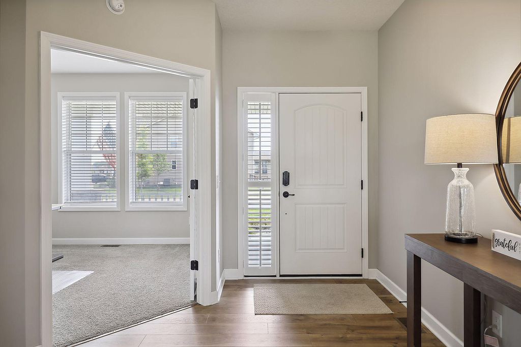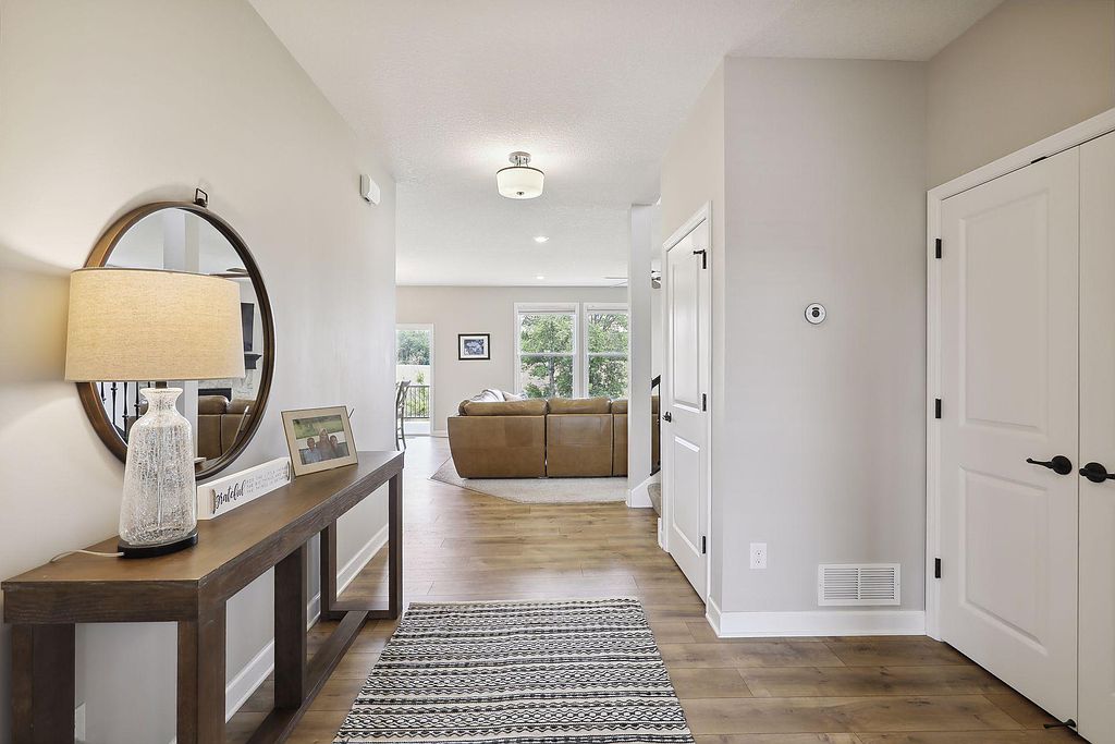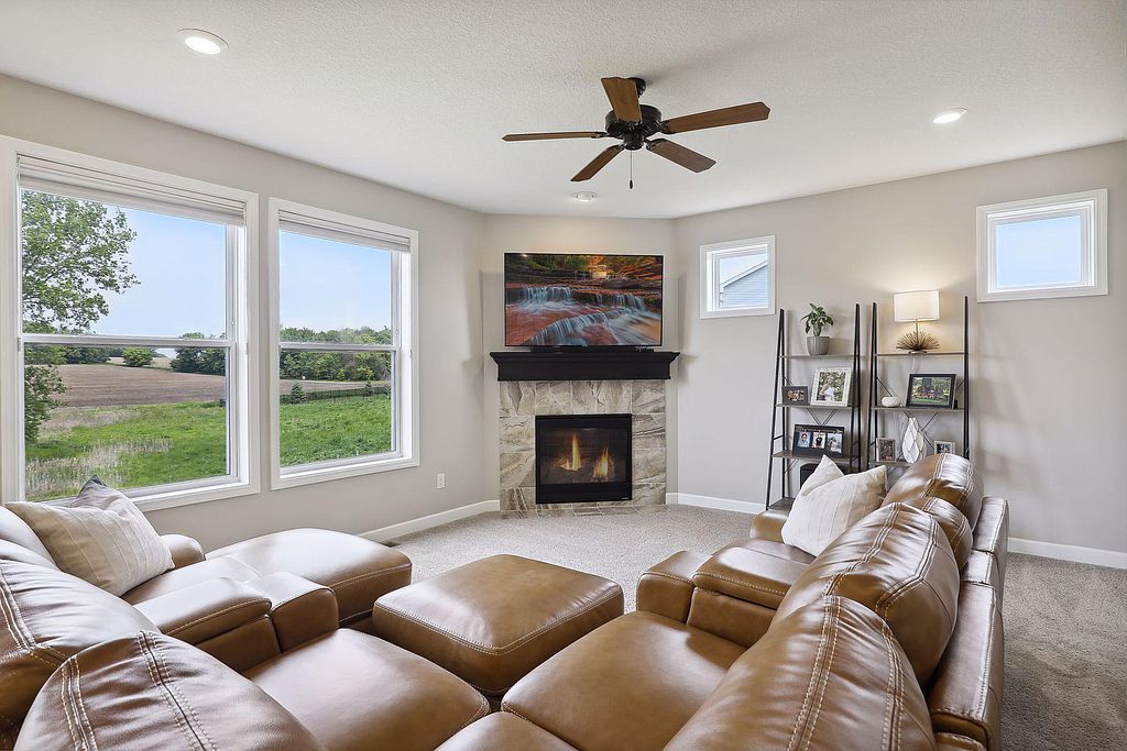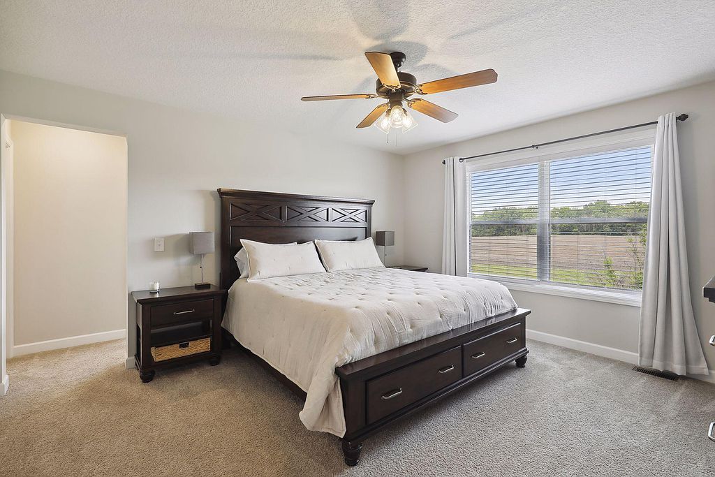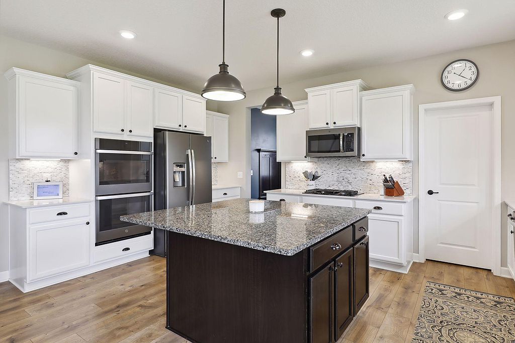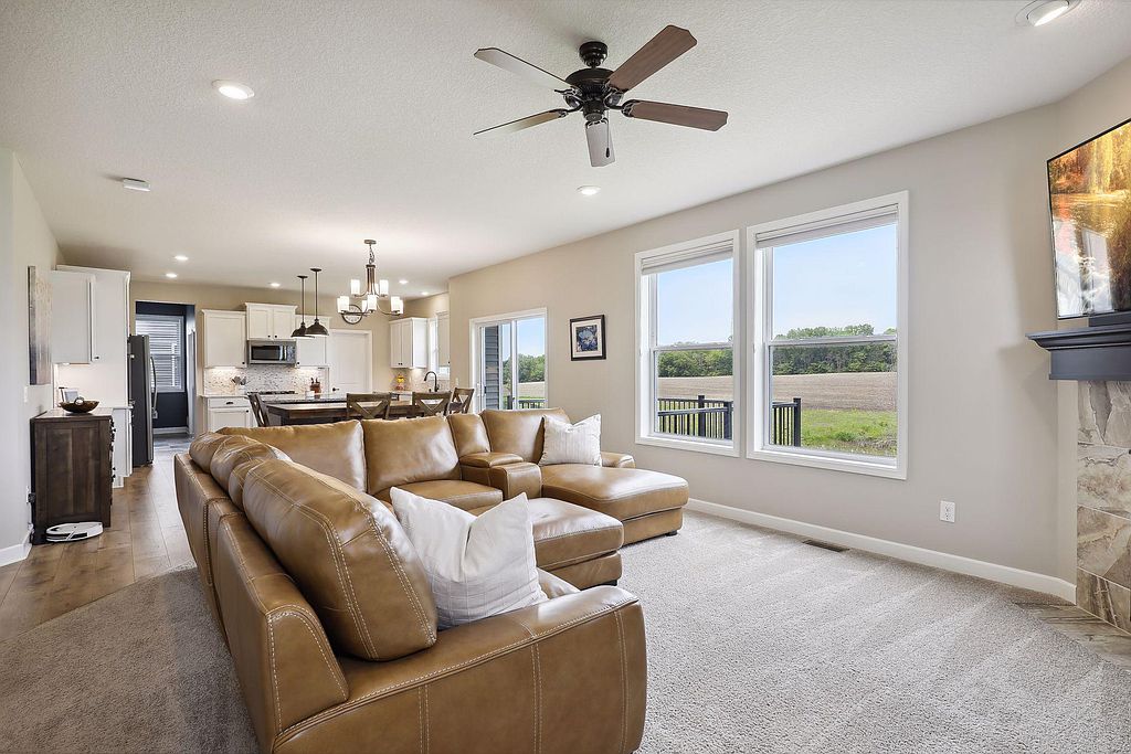 Beautifully maintained 4-bedroom 3-bathroom home boasts an open concept living area with upgraded carpet and flooring. Kitchen features stainless steel appliances, white cabinets and center island breakfast bar. Step out to the spacious deck and take in the magnificent pond view. Main floor flex room offers versatility for your home office or guest bedroom. Upper level has 4 bedrooms and large loft area for relaxation, as well as laundry. The spacious primary bedroom has an ensuite bath, walk-in closet and great nature views. The walkout lower level with bathroom rough-in can be finished to add extra living and entertainment space. This home is in the highly desirable East Ridge High School district as well as conveniently located to Radio Drive and minutes from shopping and dining. Book your showing now!