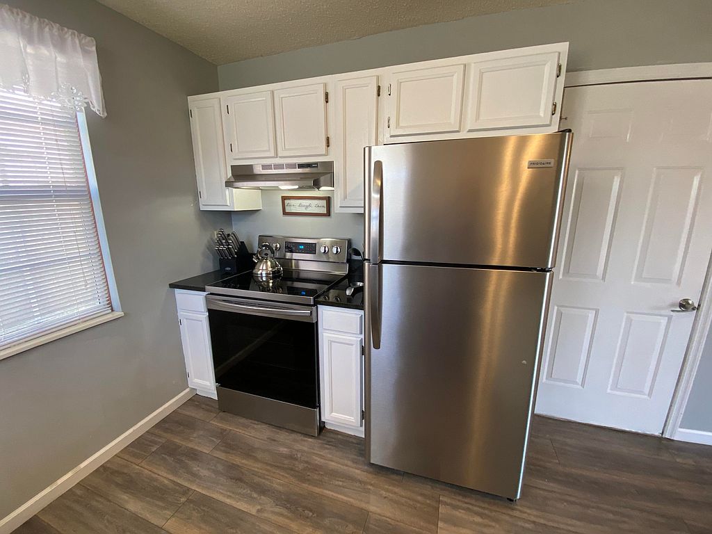 Showings start Feb 5th! Updated 3BR 2BA brick ranch off Emory Rd w/ keyless entry! Open floor plan with farmhouse board & batton accent wall & laminate floors in living areas! New SS appliances, REFRIGERATOR included, white cabinets, brkfst bar & granite counter tops in kitchen. Patio doors lead to huge back yard with 6' wood privacy fence! Yard extends well beyond fence & includes large bonfire area! Mstr BR has walk-in closet & full bath. Both baths have farmhouse mirrors & lighting & luxury vinyl floors. Laundry has stained shelving, black & white floors & WASHER & DRYER are included! BR 2 also has a walk-in clo & BR3 would make a great nursery or office! There are 2 hall closets, a roomy garage and attic storage! Great location near restaurants & shopping, 5 min to I-75. 1yr warranty!