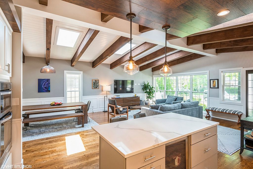 Jaw dropping 2018 complete renovated home in highly sought out Timber Ridge subdivision, D65 Evanston Public Schools. Designer-caliber finishes make this spacious home feel like it's on HGTV! If you are looking for lots of space, this 4 bed 3.5 bath home is for you. Kitchen features 42' white custom cabinets, quartz counters and stainless steel appliances. High ceilings with skylights and gorgeous beams. Primary bedroom with ensuite bath and 2 large bedrooms and additional bath are on the top floor. Huge finished basement with guest (4th) bedroom, 3rd full bathroom and laundry room. Main floor has both living and family room. Family room has sliding doors for easy access to large patio. Stunning backyard with professional landscape and Koi Pond. Make this home yours before the summer ends!