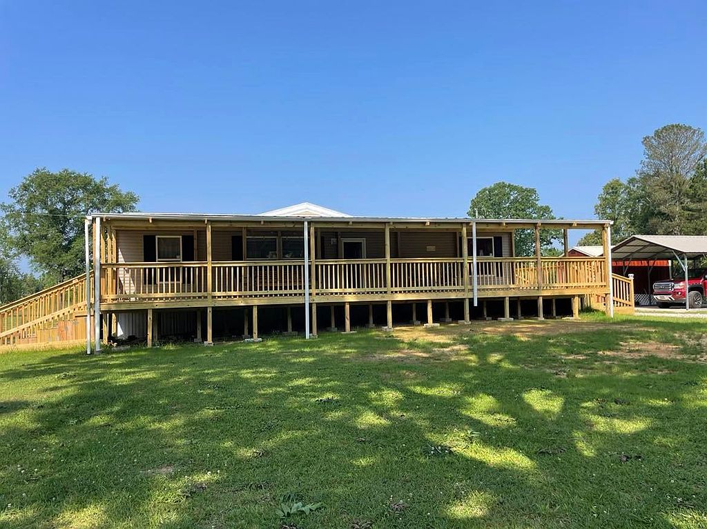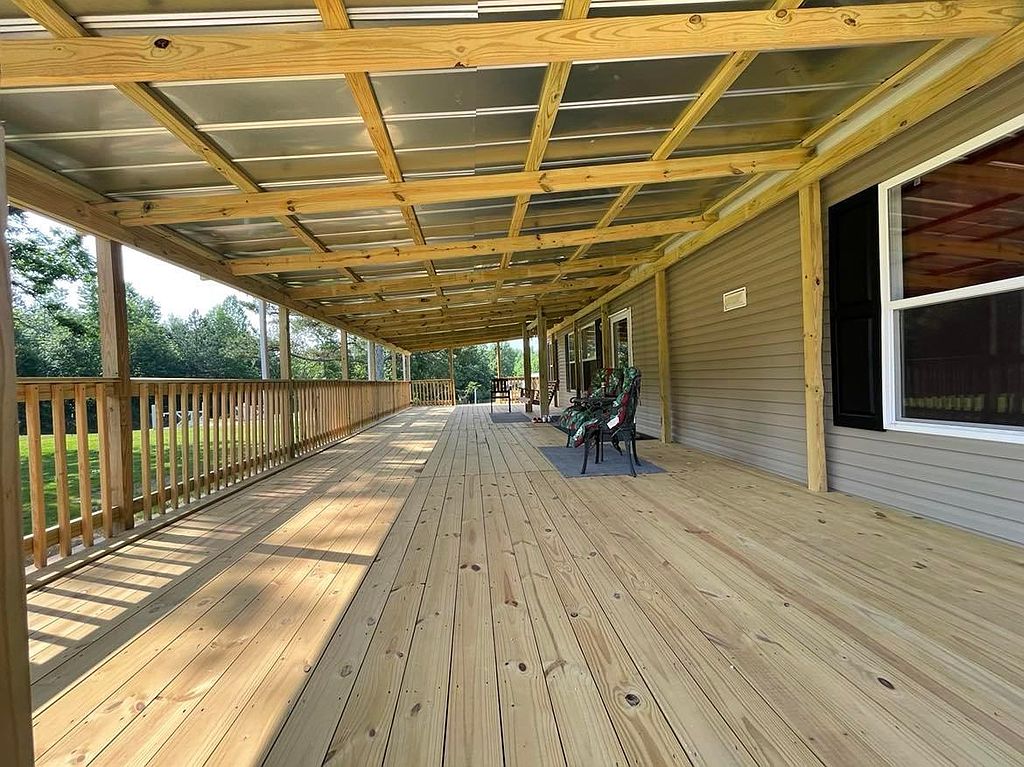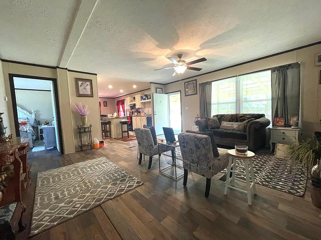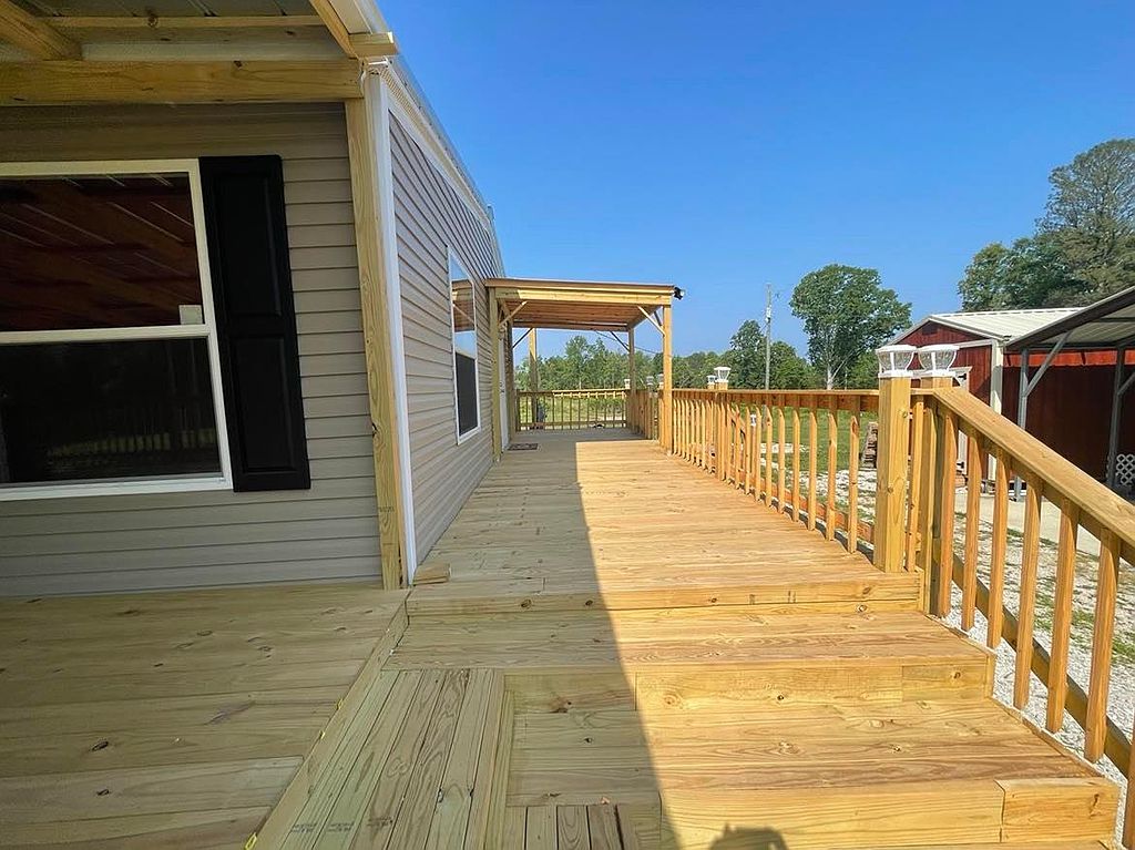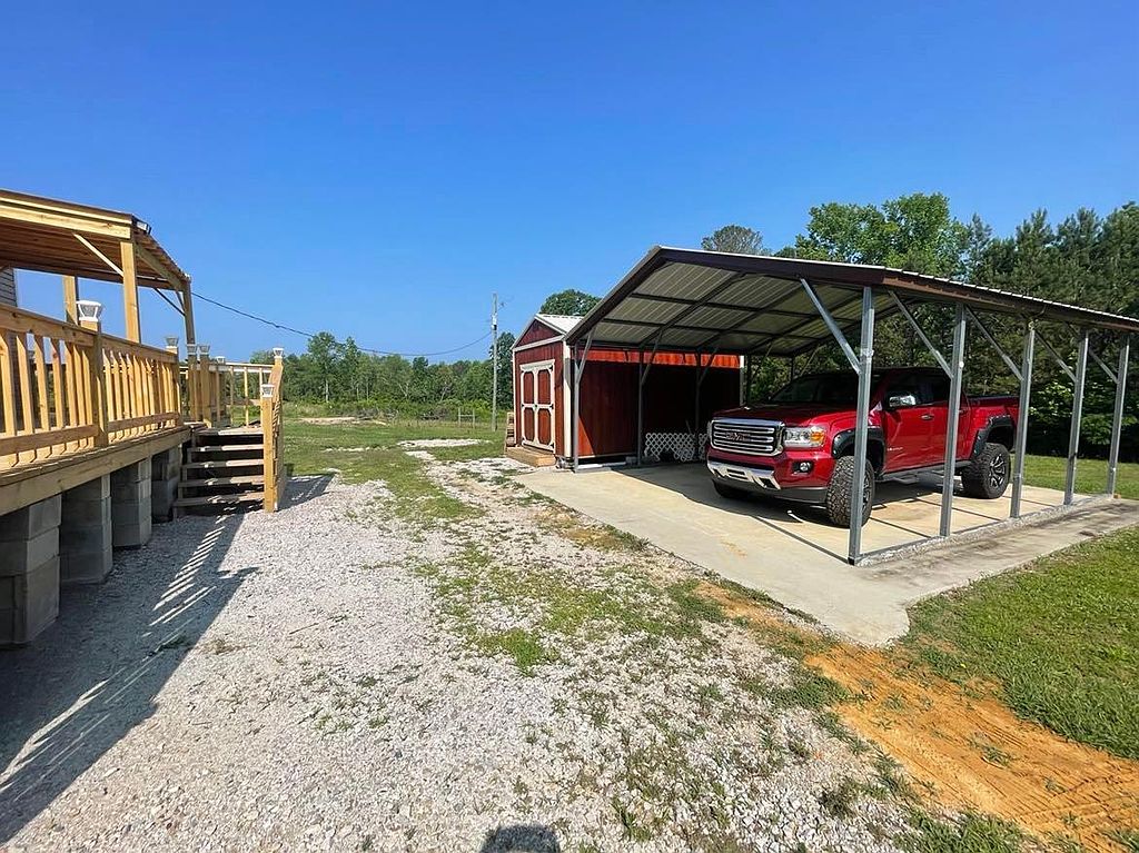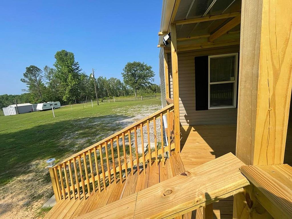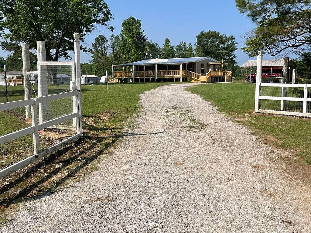 This beautiful new 2023 mobile home is located on 4.08 acres of land in a quiet, rural setting. The home is spacious and well-appointed, with plenty of room for your family and friends to relax and unwind. The open floor plan makes it easy to entertain, and the large kitchen is perfect for preparing meals. The home also features a master bedroom with its own private bathroom, as well as 3 additional bedrooms. The home is surrounded by lush greenery, and the large backyard provides plenty of space for outdoor activities. There is a covered patio perfect for grilling0The property also includes a covered 16x48 front porch. There is a double carport and a new 9x16 storage building. There is a new survey that included a partial fenced pasture. No carpet in home, all engineered hardwood. No lockbox.
