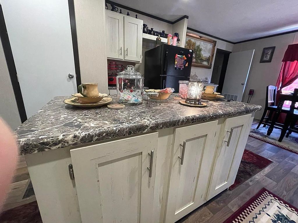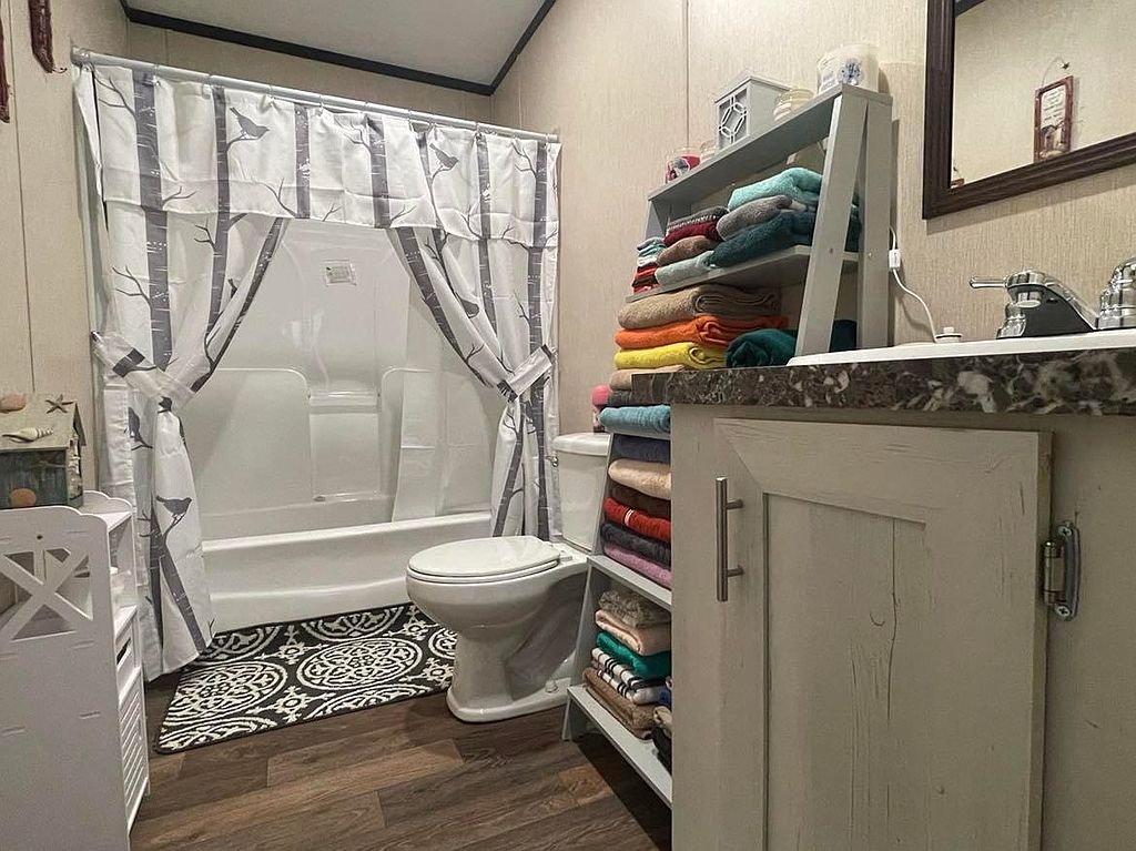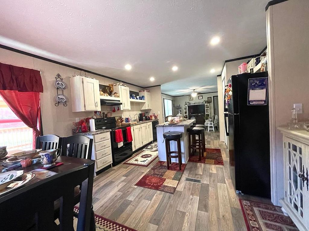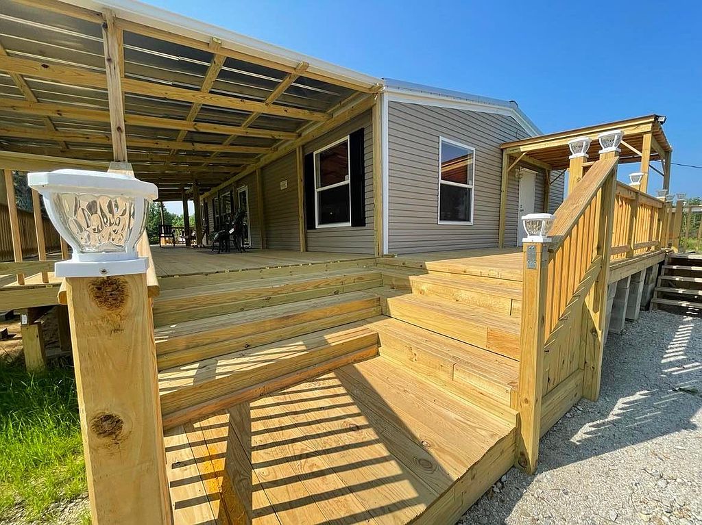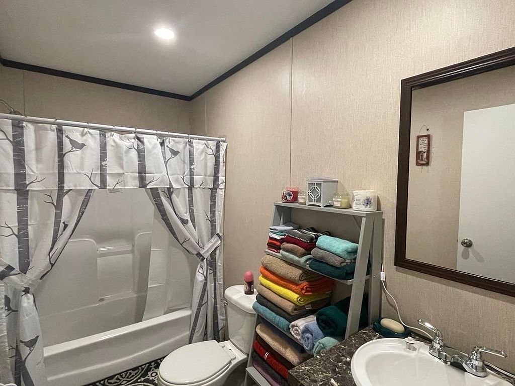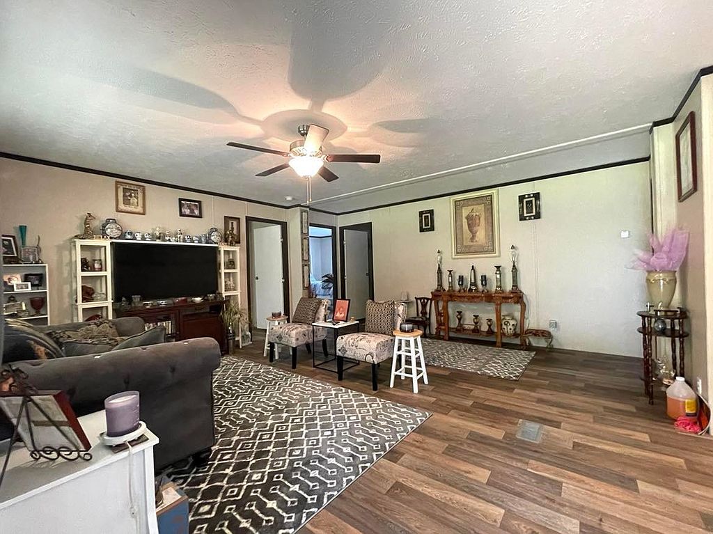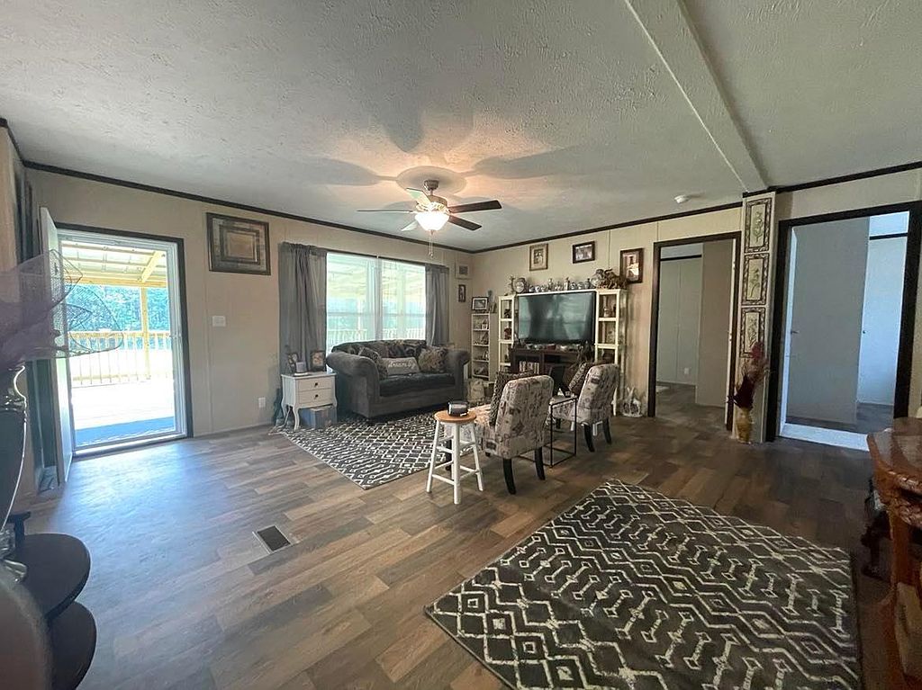 This beautiful new 2023 mobile home is located on 4.08 acres of land in a quiet, rural setting. The home is spacious and well-appointed, with plenty of room for your family and friends to relax and unwind. The open floor plan makes it easy to entertain, and the large kitchen is perfect for preparing meals. The home also features a master bedroom with its own private bathroom, as well as 3 additional bedrooms. The home is surrounded by lush greenery, and the large backyard provides plenty of space for outdoor activities. There is a covered patio perfect for grilling0The property also includes a covered 16x48 front porch. There is a double carport and a new 9x16 storage building. There is a new survey that included a partial fenced pasture. No carpet in home, all engineered hardwood. No lockbox.