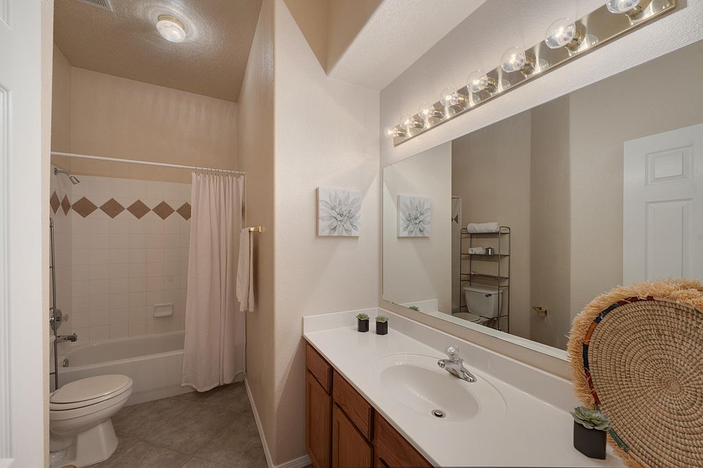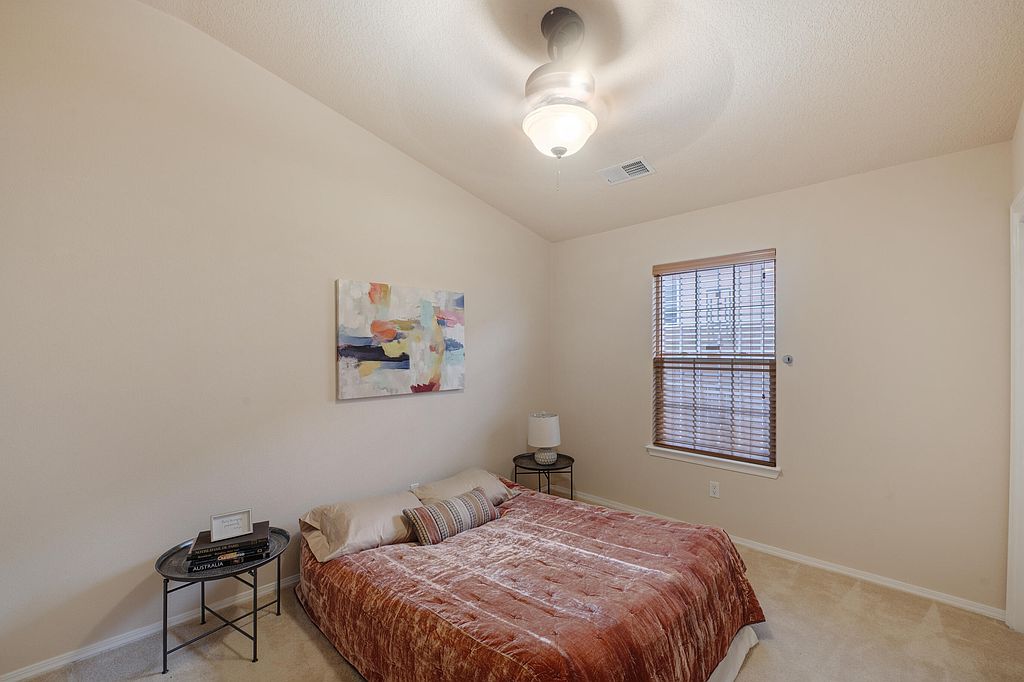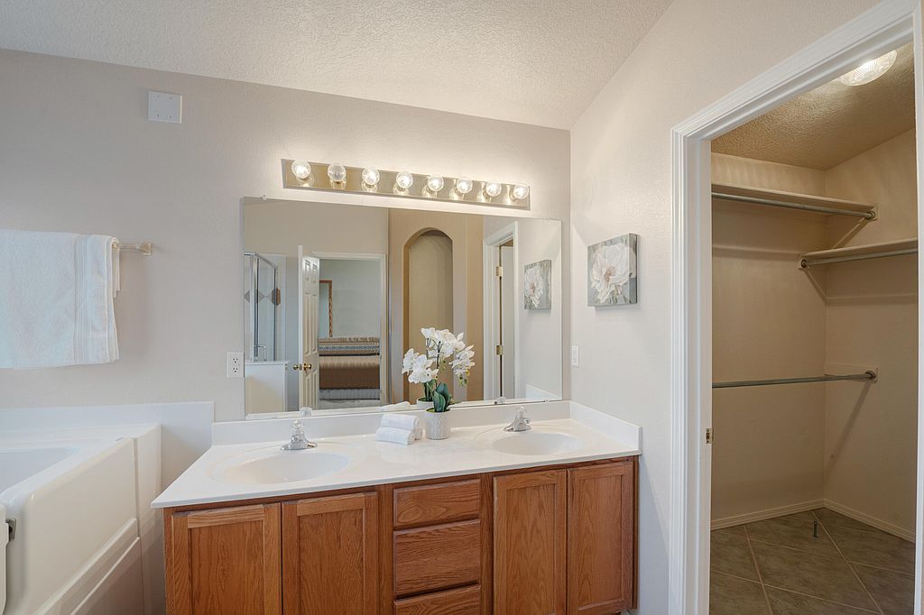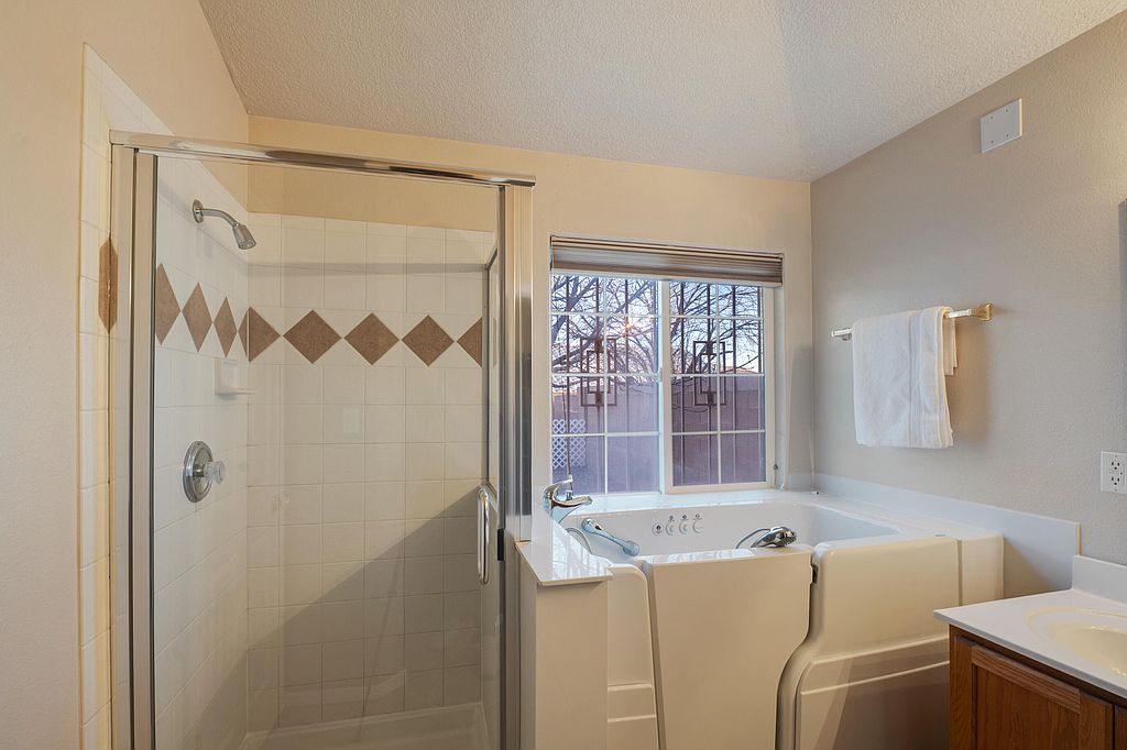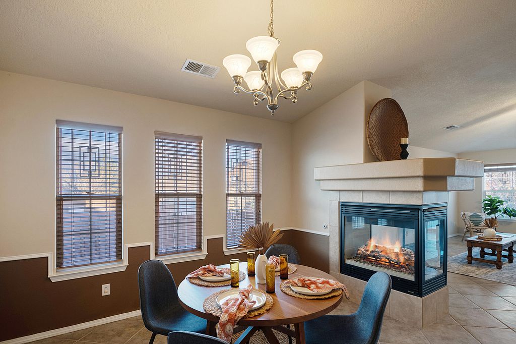 From the curb appeal, to the floorplan, to the location--this property is superb! The stylish turret entry w/ a circle of clerestory windows will put a smile on your face; Experience multiple living areas which are accented by a cozy 2-way fireplace, a wall of sunny windows and vaulted ceilings. Enjoy the open kitchen with abundant counter/cabinet spaces, a pretty backsplash+a sizeable pantry. Excellent BR separation, tile in all public areas, carpet in the BR's, refrigerated air. The oversized interior corner lot is EZ care and has a covered patio+storage--Relax/Enjoy! Solar system is leased, the monthly payment = $81.42.