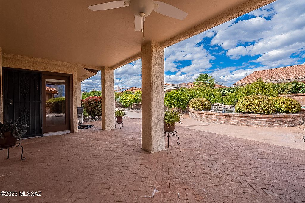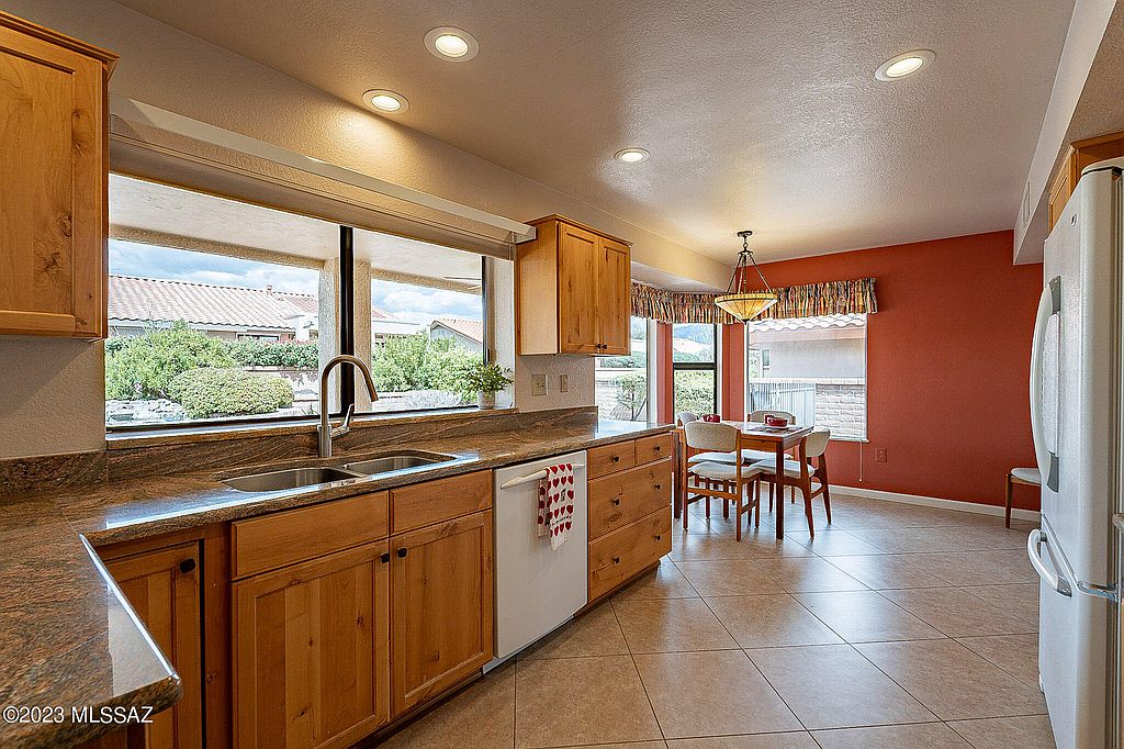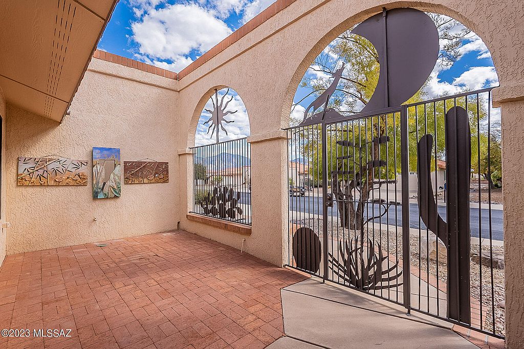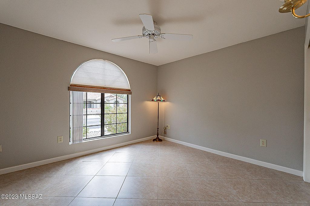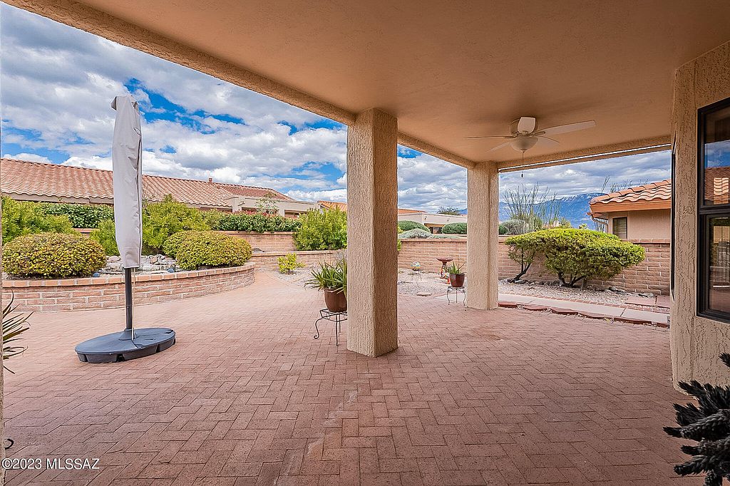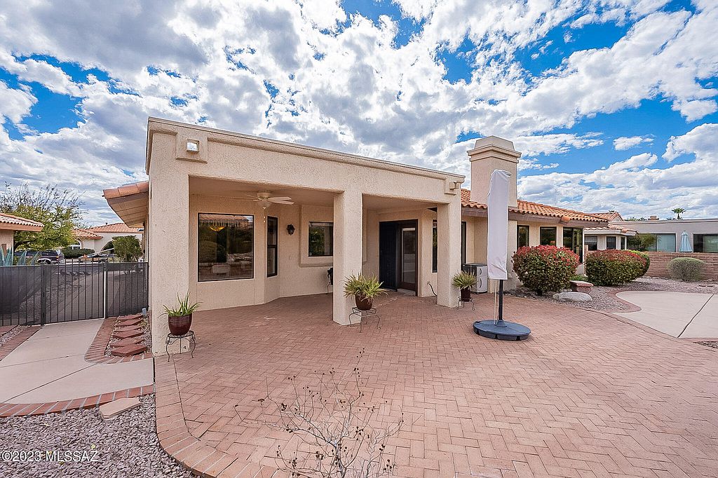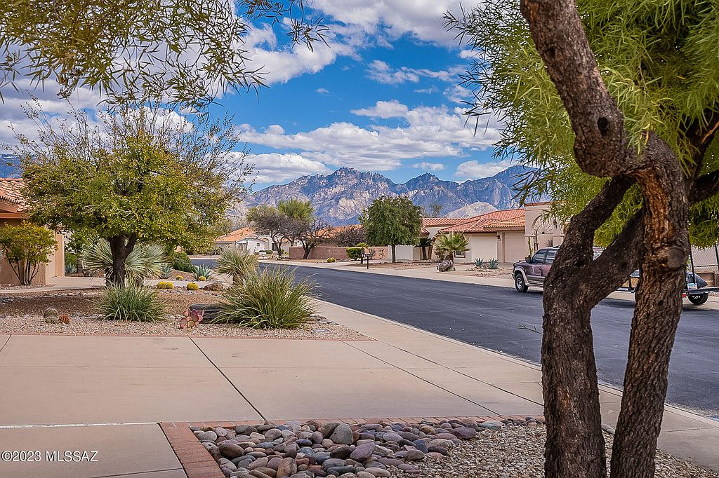 Welcome to your move-in ready Pacifica model home in Sun City Oro Valley. As you step inside this light and bright home, you'll be greeted with large, comfortable living spaces. This charming home boasts an updated kitchen complete with granite counter tops, breakfast bar, gorgeous cabinets, new gas range, and a cozy nook. The bonus room just off the kitchen is ideal for use as an office or craft room. Kitchen opens up to family room with gas fireplace and french doors to the back patio. You'll love the spacious owner's suite with its bay window and en-suite bath featuring a walk-in shower, separate tub, granite topped dual vanity, and walk-in closet. The comfortable guest room has ample space for your visitors, with an updated hallway bath conveniently located nearby. Extended garage comes with storage cabinets, washer/dryer and utility sink. Step outside to your tranquil backyard oasis complete with an expansive paver patio, lush landscaping including fruit trees, a soothing water feature, and Catalina Mountain views. You'll enjoy peace of mind with the owned solar panels. This beautiful home has everything you need to begin your active adult lifestyle today.