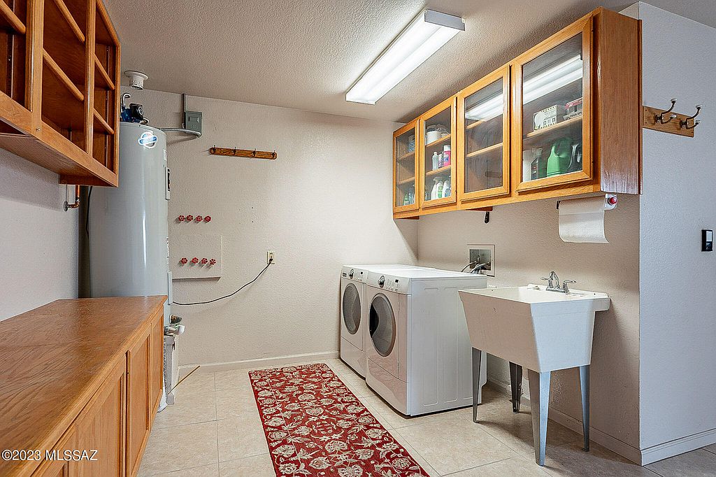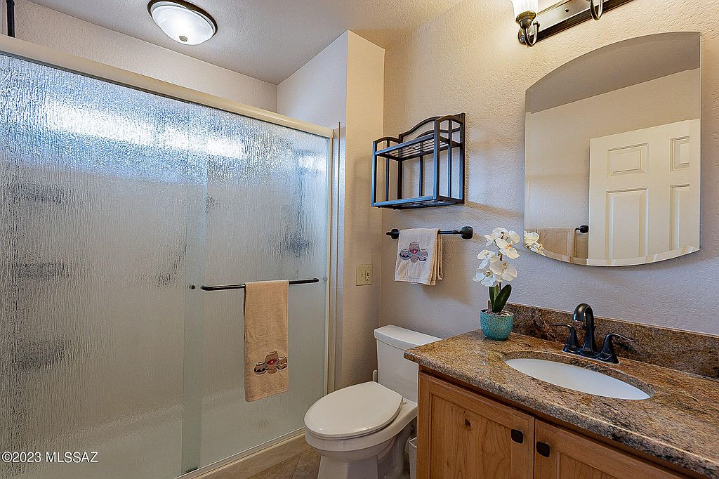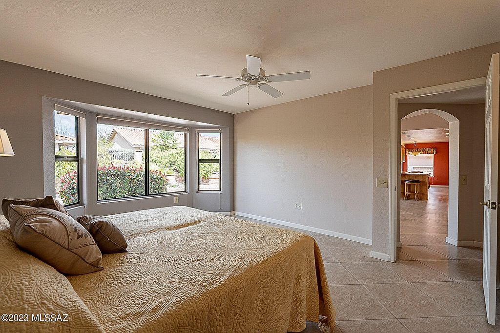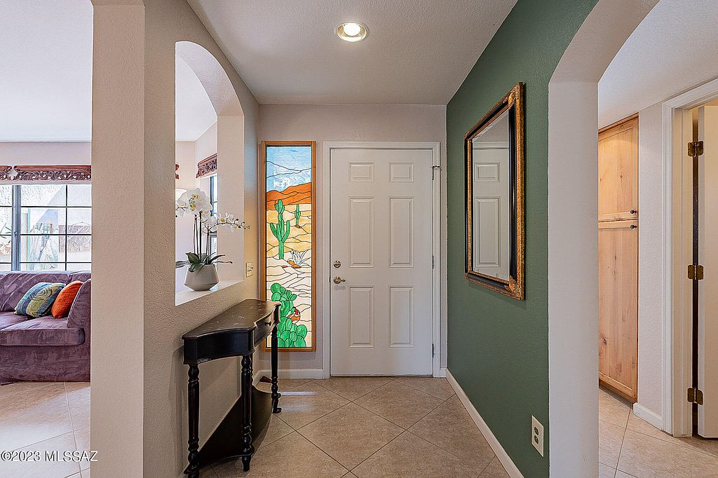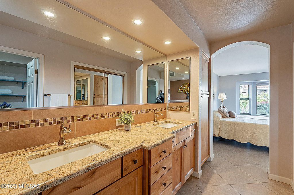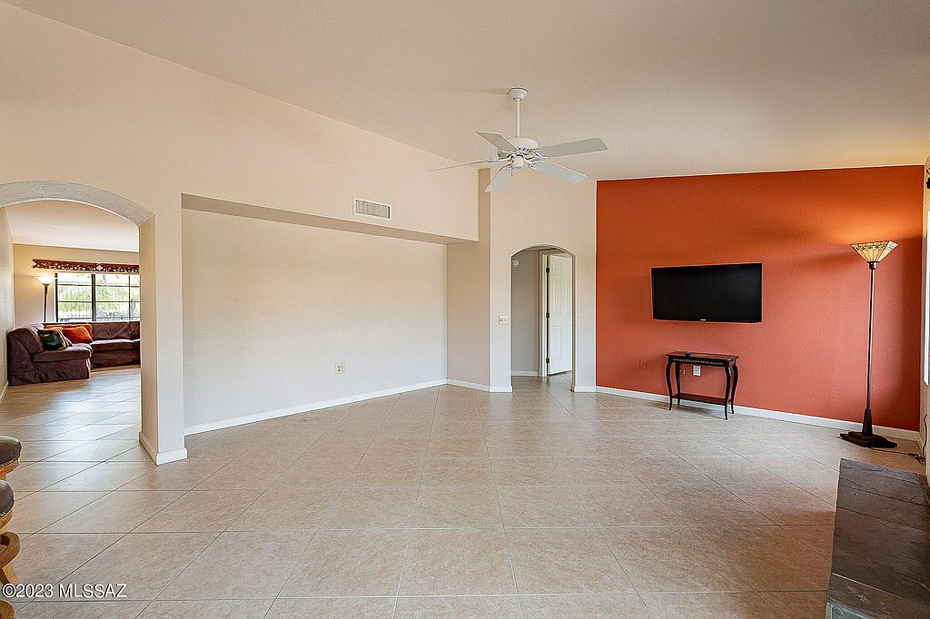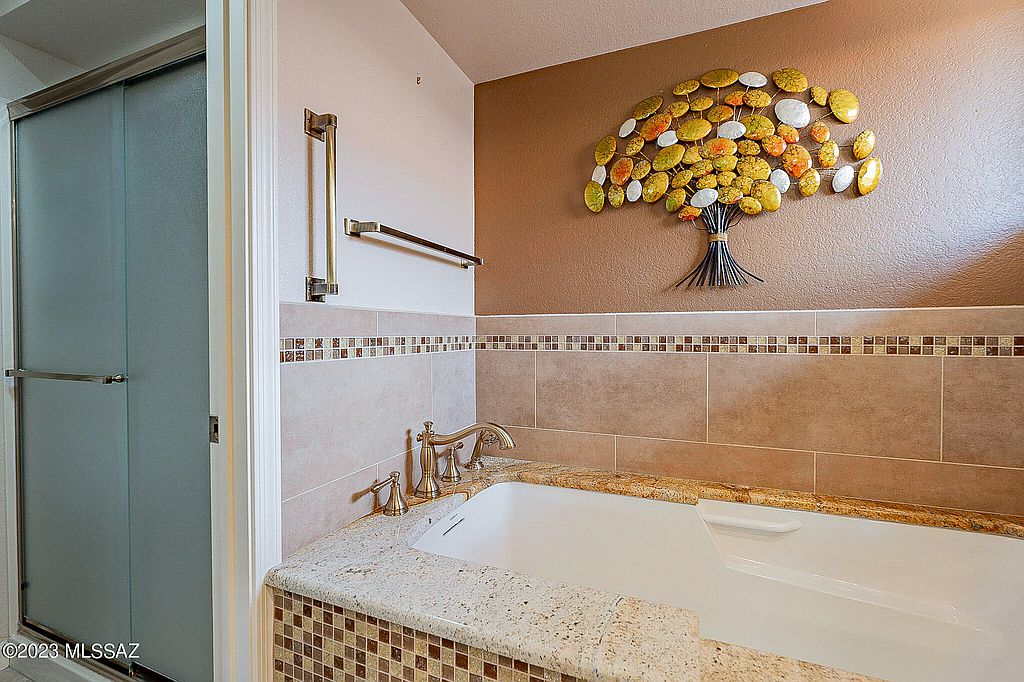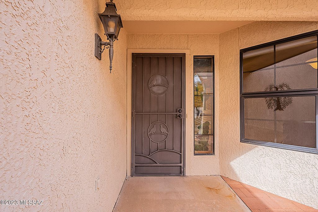 Welcome to your move-in ready Pacifica model home in Sun City Oro Valley. As you step inside this light and bright home, you'll be greeted with large, comfortable living spaces. This charming home boasts an updated kitchen complete with granite counter tops, breakfast bar, gorgeous cabinets, new gas range, and a cozy nook. The bonus room just off the kitchen is ideal for use as an office or craft room. Kitchen opens up to family room with gas fireplace and french doors to the back patio. You'll love the spacious owner's suite with its bay window and en-suite bath featuring a walk-in shower, separate tub, granite topped dual vanity, and walk-in closet. The comfortable guest room has ample space for your visitors, with an updated hallway bath conveniently located nearby. Extended garage comes with storage cabinets, washer/dryer and utility sink. Step outside to your tranquil backyard oasis complete with an expansive paver patio, lush landscaping including fruit trees, a soothing water feature, and Catalina Mountain views. You'll enjoy peace of mind with the owned solar panels. This beautiful home has everything you need to begin your active adult lifestyle today.