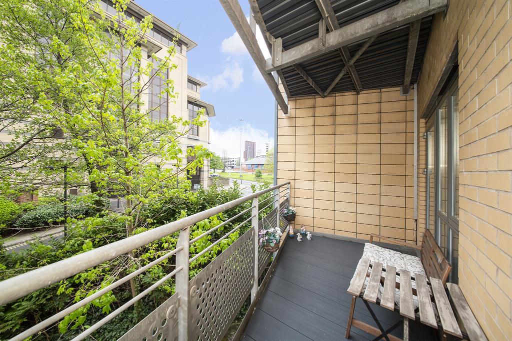 You must go inside to appreciate the exceptional accommodation offered by this most striking and impressive very well appointed penthouse style apartment occupying an excellent position on the second floor of this much favoured and convenient contemporary style development in the heart of the "Arena Quarter" on the northern fringe of the city centre. The property, which offers a unique opportunity at the guide price, comprises communal lobby, wide entrance hall, superb 26' x 15' living room with lounge/dining areas and modern fitted kitchen area, south facing main balcony, two extra large double bedrooms (one with top quality fitted furniture and new oak flooring), second balcony, en suite shower room, house bathroom, electric heating, sealed unit double glazing and landscaped communal piazza. Energy Rating - D