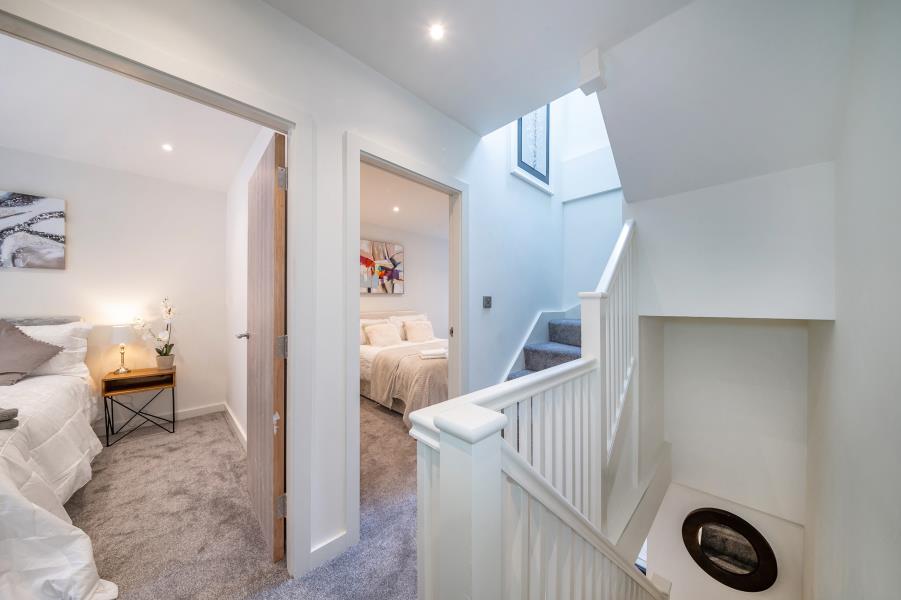 To the ground floor is an extended rear section to each home providing a spacious living dining kitchen with sliding doors to the rear out into the private garden. A single bedroom or study completes the ground floor.