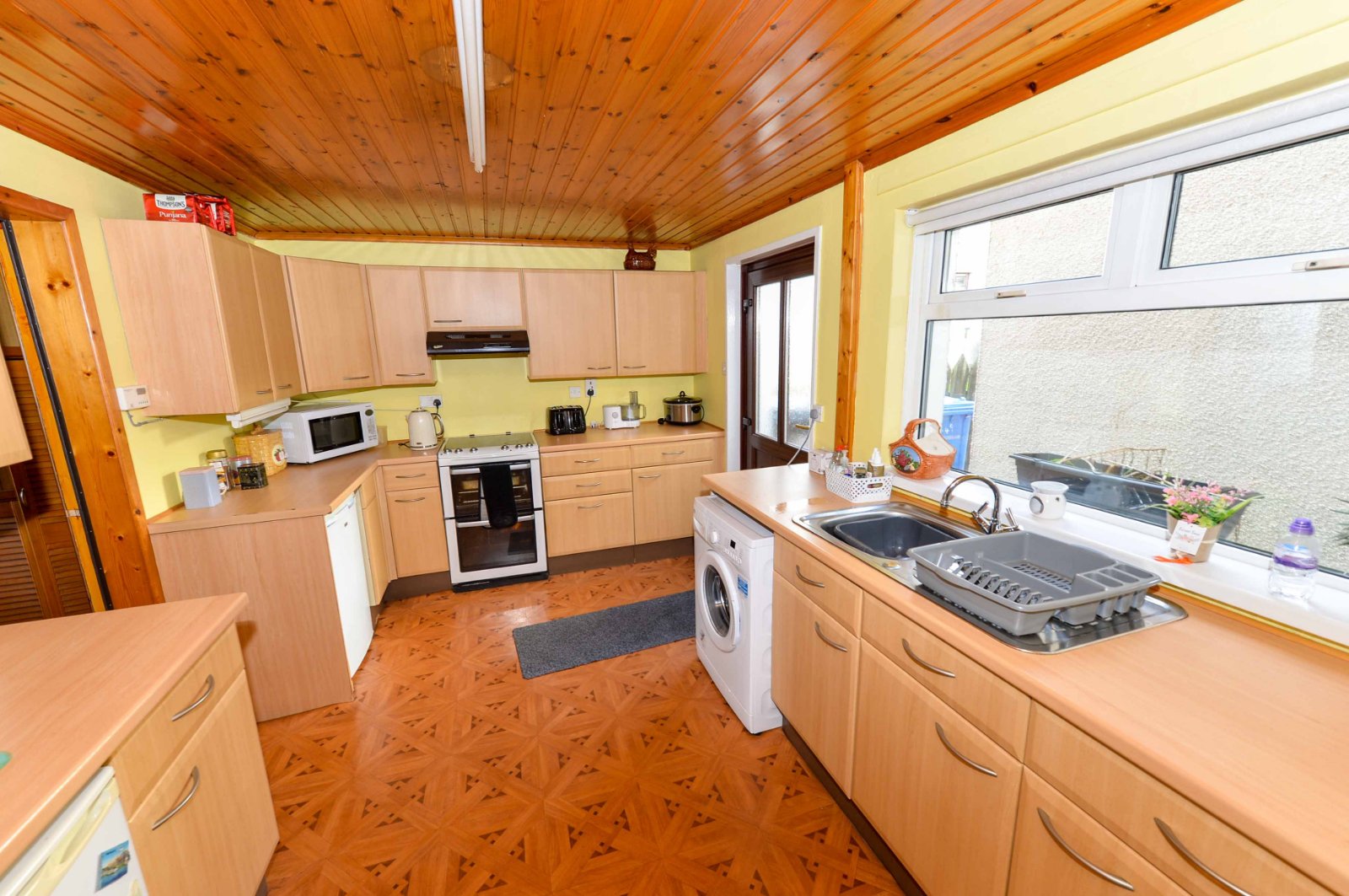 Internally the bright accommodation comprises four bedrooms, two reception rooms, kitchen and bathroom with coloured suite. Further benefits include oil fired central heating, double glazed windows and doors and ground floor shower room. Externally there is a well tended garden to front and detached garage to rear.