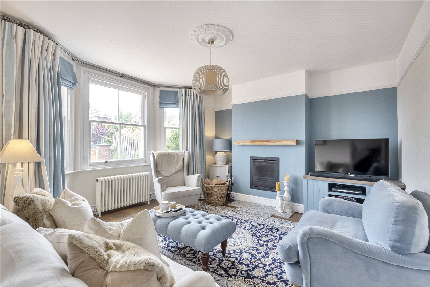 Good sizes sitting room with south facing bay sash window and period style radiator beneath overlooking the gravelled drive and parking area. A modern fire place with alcoves either side a central suspended light with ornate picture rail. The room is well served electrical and TV points.