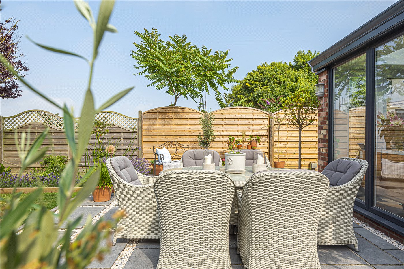 The property has a large south facing driveway and parking rea for several cars. This leads through a secure gate to the side of the property and the good sized rear north facing garden with patios, lawn and established flower bed. At the far end of the garden there are two wooden buildings. The first a summer house and shed, the second a further good sized workshop/shed with wooden decking and space for outside entertaining.