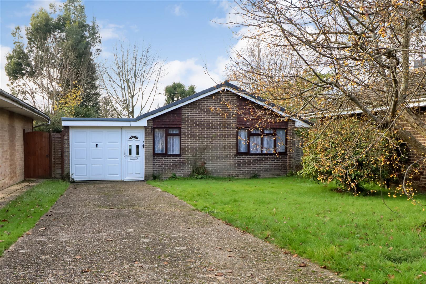 No onward chain! A rarely available detached bungalow in a peaceful cul-de-sac location, offering great access for the station & town centre, hallway, living room, dining room, kitchen, lean to, two bedrooms, shower room, front garden, off road driveway parking for 2-3 cars, garage, rear garden.