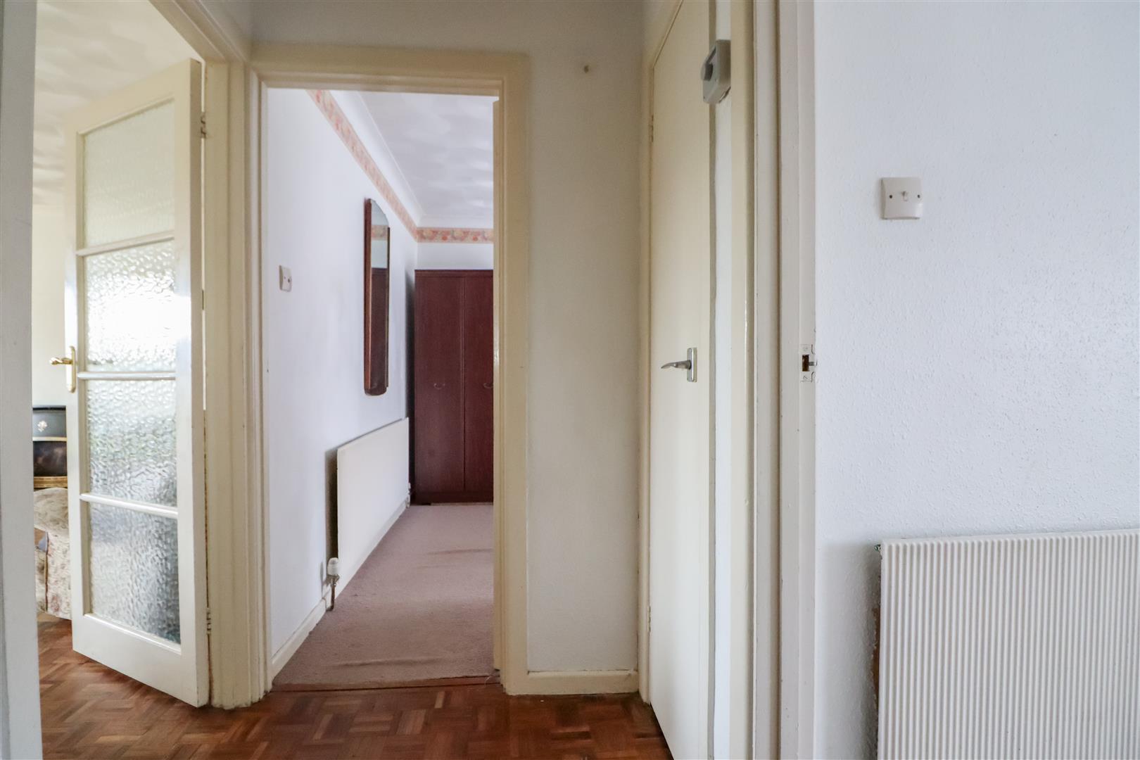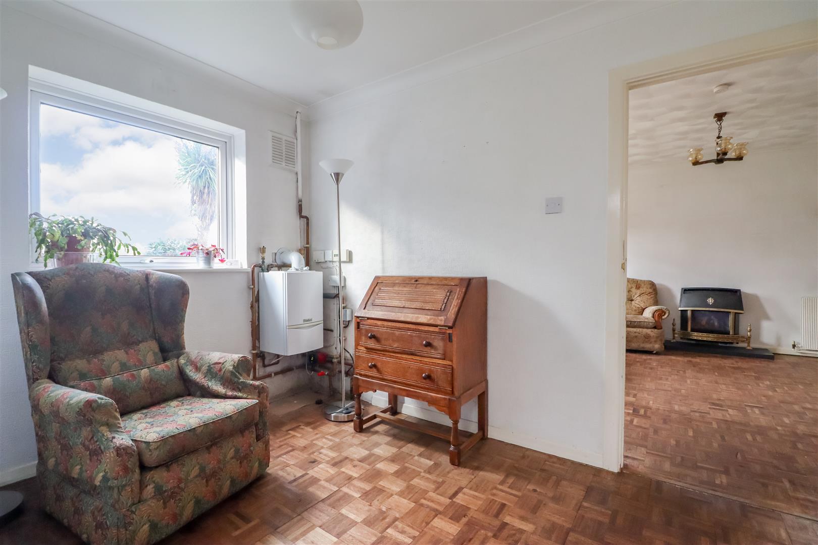 A driveway with parking for 2-3 cars leads to a large garage, providing space for additional parking, or could easily be developed, subject to consent, into the living space of the home to provide additional bedroom or living accommodation if desired. From here, the side door leads into an inner hallway with doors leading to the bedrooms and bathroom. The bedrooms are both doubles, the principal bedroom being a particularly good size and featuring fitted cupboards. The bathroom has been turned into a tastefully finished shower room with walk-in double shower.