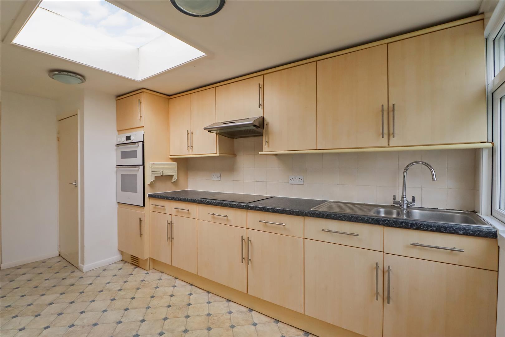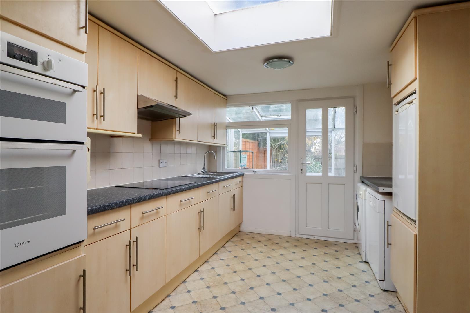 The living room is an excellent size, filled with lots of natural light thanks to the large patio doors overlooking the rear garden. From the living room, we enter a cosy dining room, but this could equally be used as a study. The kitchen is positioned beyond this room, as has access to the garage by a separate door. The kitchen is a generous size and fitted in a range of base and wall units with plenty of space for freestanding appliances.