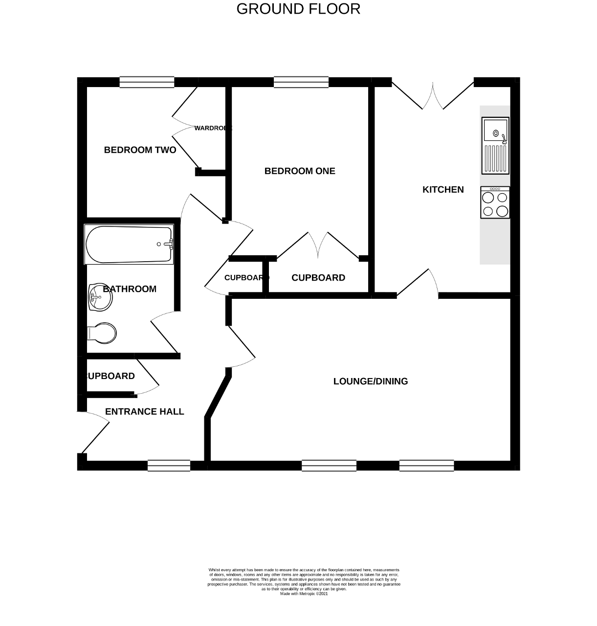 Well-proportioned lounge/dining with space for dining furniture if required. Two double glazed windows allow natural light into this lovely room. Attractive linoleum flooring. A door from the lounge provides access into the kitchen.