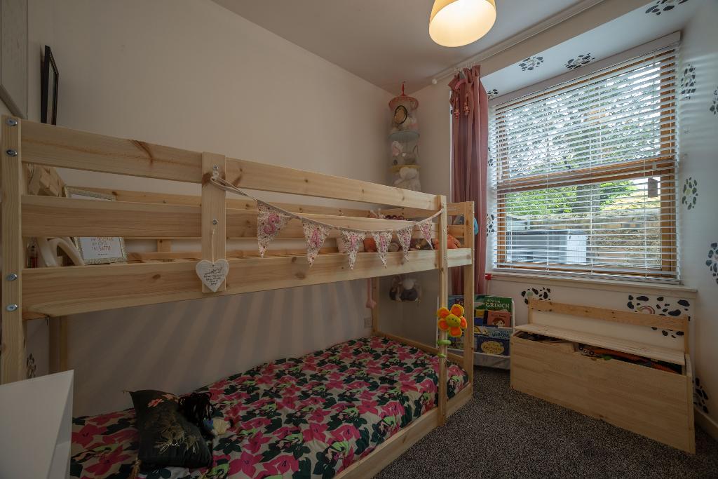 Bedroom two is located to the rear, an ideal single room with fitted wardrobe and window overlooking the rear garden. Fitted carpet.